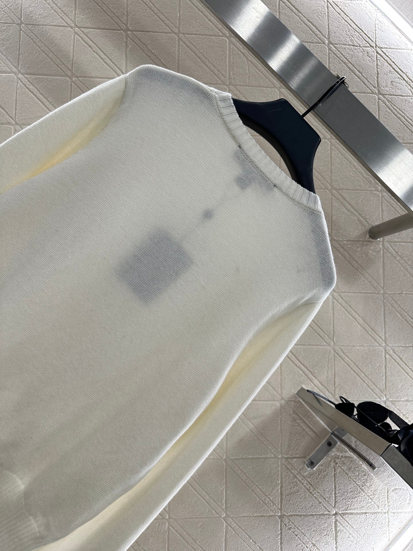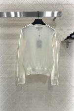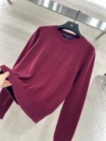 Cashmere yarn weaving provides comfortable and high-quality clothing. Knitted long sleeved top, cut with chest studs, sewn with letter patterns, rich layers, gorgeous edging, pit strips, thread highlighting the brand style. The garment is slightly elastic and presents a slimming visual effect