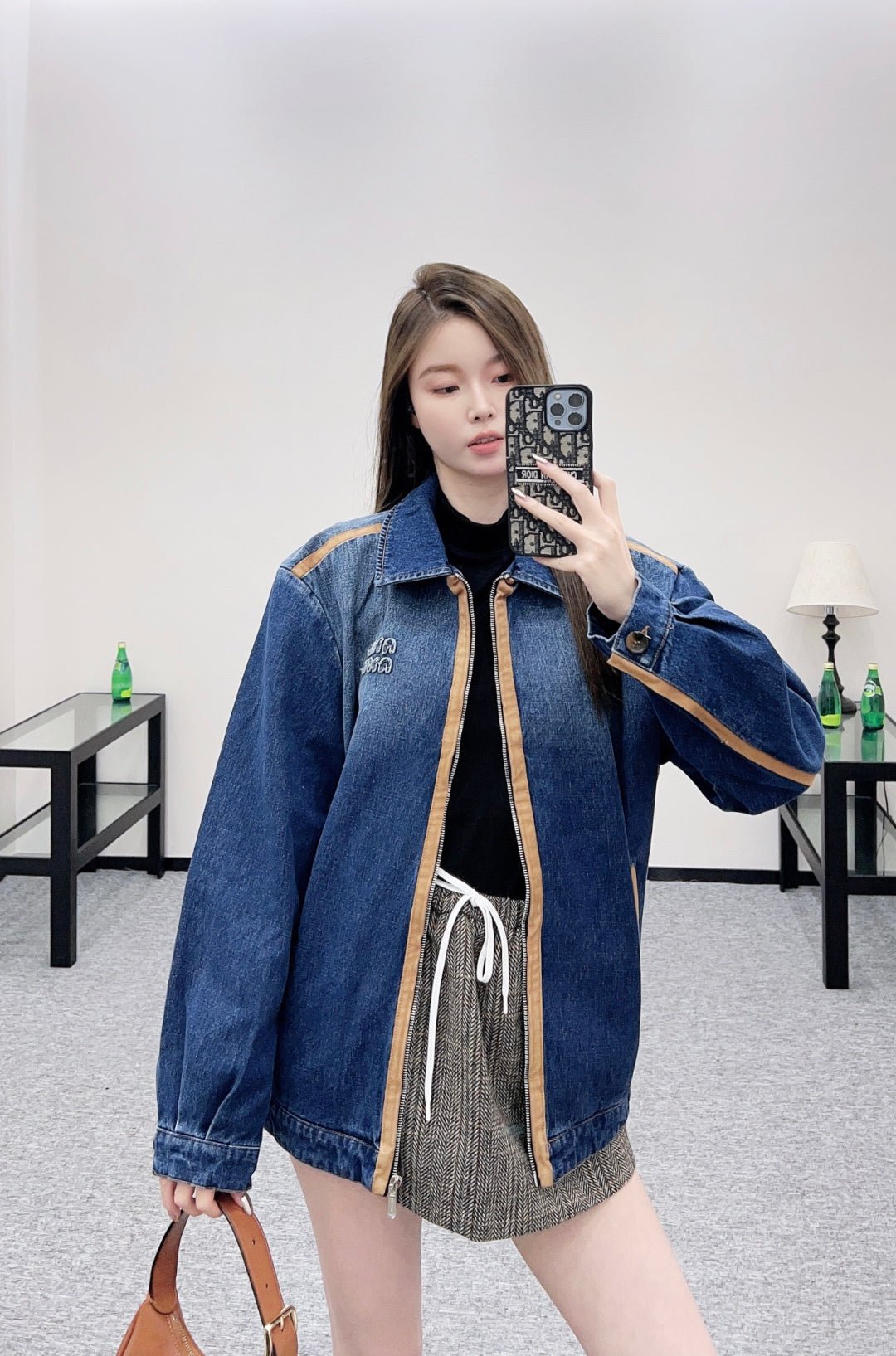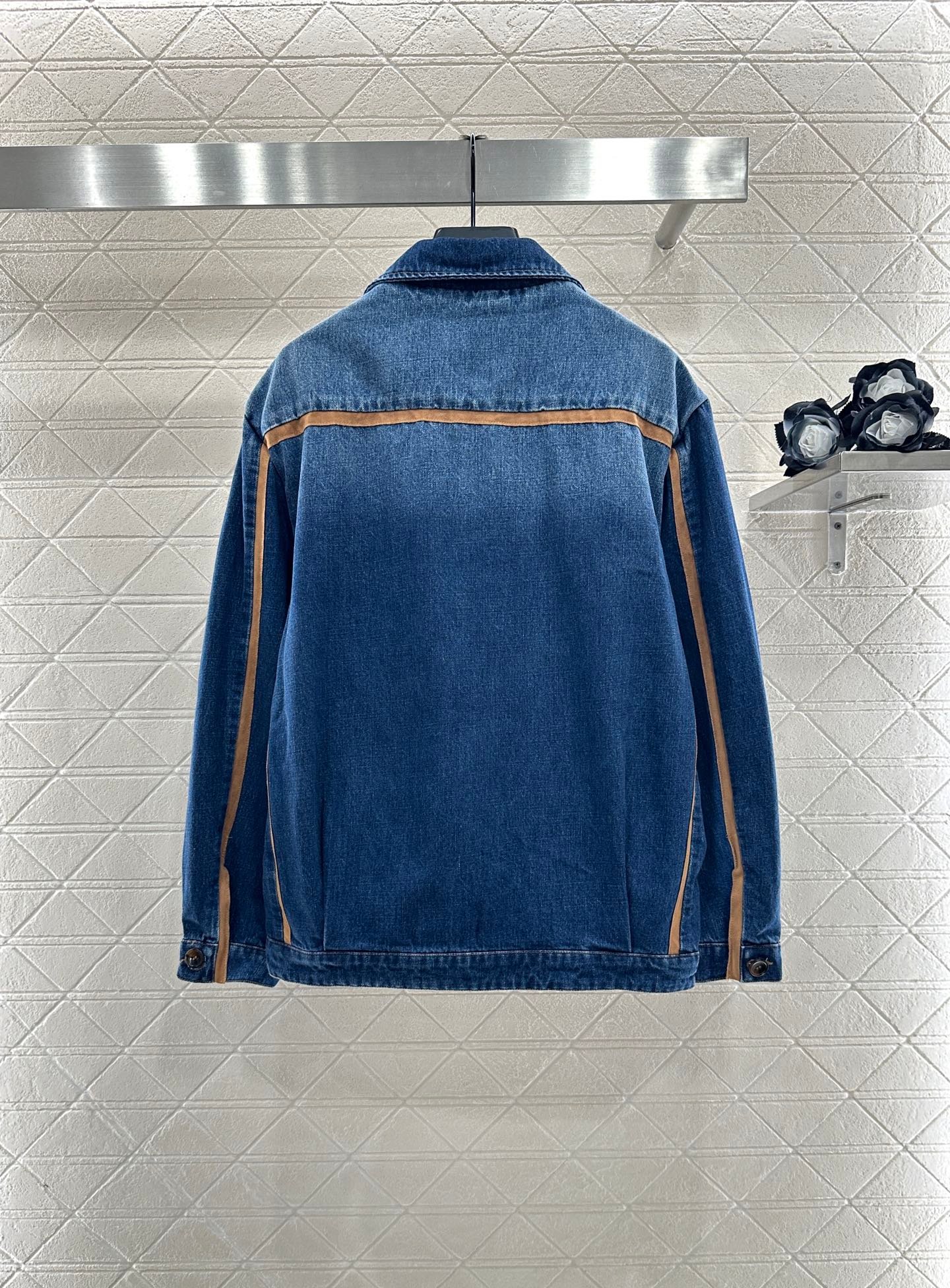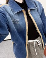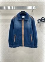 The twill cotton denim material has a crisp texture and a stylish look. It features a zippered jacket with a loose design on the shoulder and lapel, evenly dyed with enzyme water washing throughout the body. It is versatile and durable in retro deep blue, suitable for autumn casual wear. The shoulder, front, and pocket edges are made of brown suede fabric, which collides with the body. The chest is embroidered with letters and logos, highlighting the style. The three-dimensional straight cut increases the capacity and is more eye-catching and fashionable. The exquisite and durable details highlight the fashionable and stylish style of the outfit. It is the first choice for early autumn season changes and also great for layering