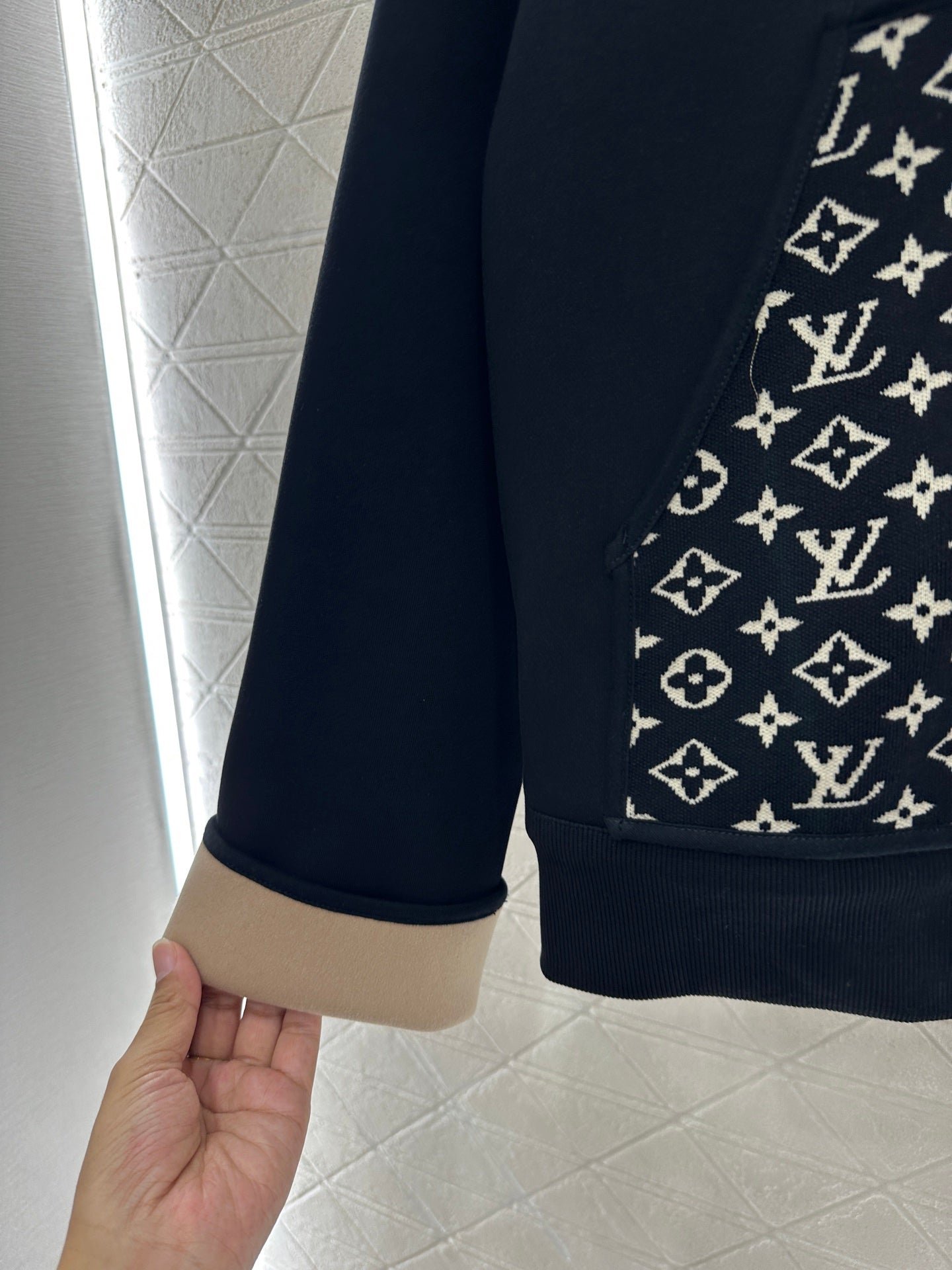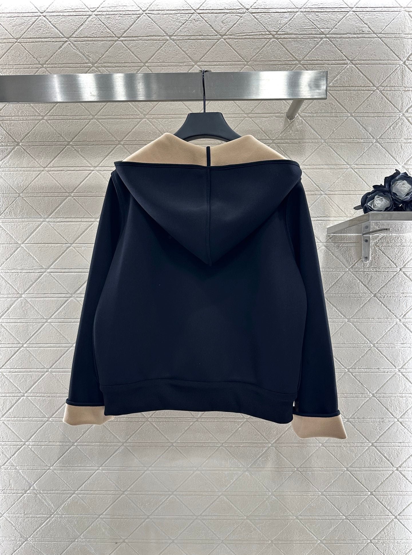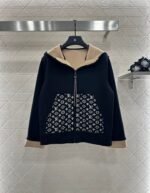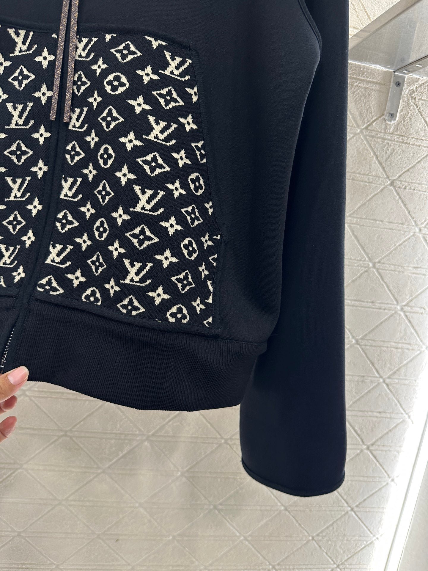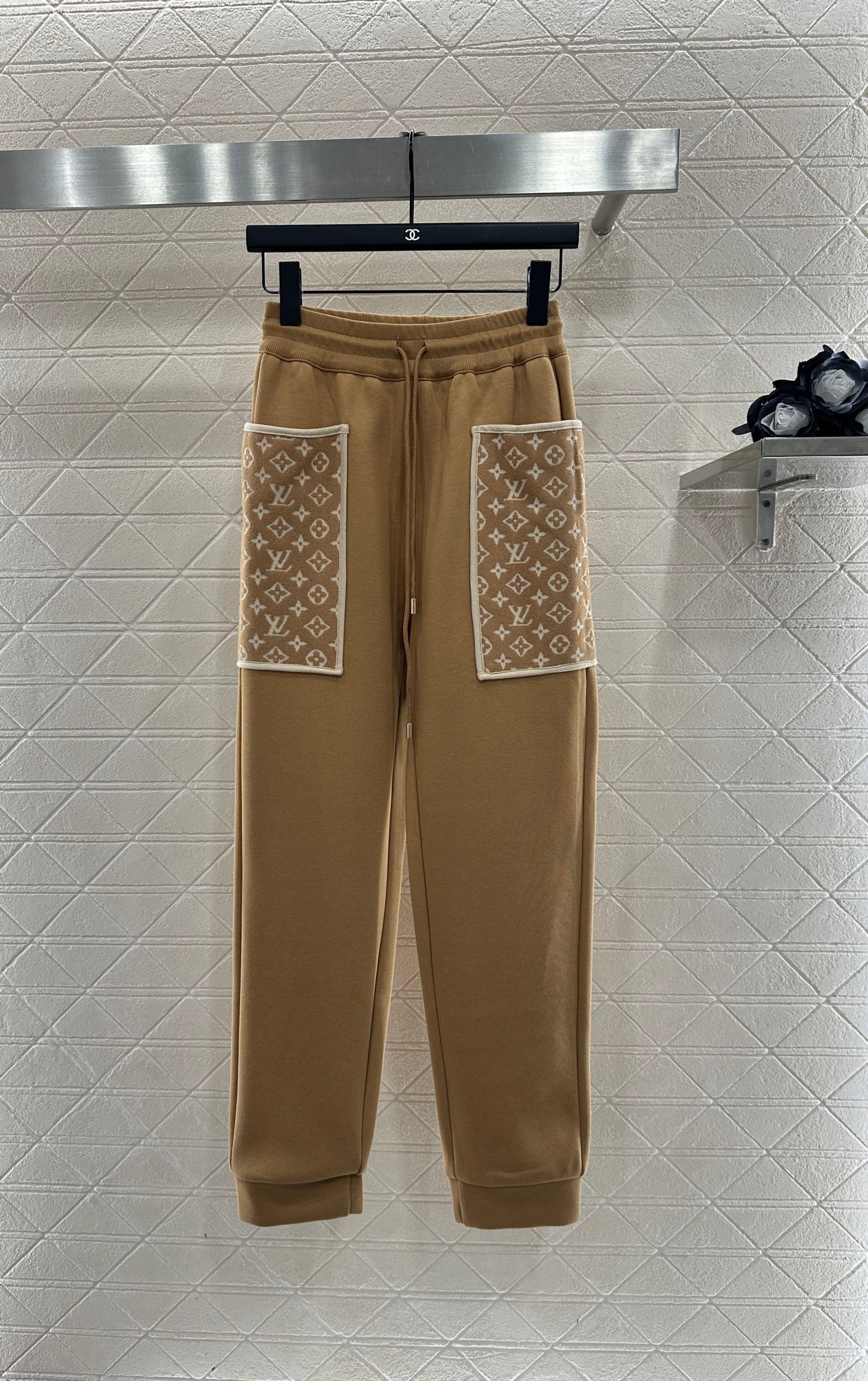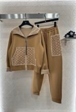 Cotton polyester blend material, composite process treatment, glossy texture, comfortable thickness, hooded jacket and pants set, fashionable and casual jacket, jacquard clover letters on the large plain color splicing pocket, fashionable and stylish, zipper and leather buckle decorated with the iconic old flower letter logo, instantly enhancing the brand style, enriching the visual effect and making it more fashionable. Paired with the same series of straight leg ankle tied pants, the pocket details echo the style, and the drawstring adds personality and leisure, increasing the sense of style. The set is matched with simple and high-end design. Daily outfits are essential, a guide for casual wear, and a relaxed and fashionable look