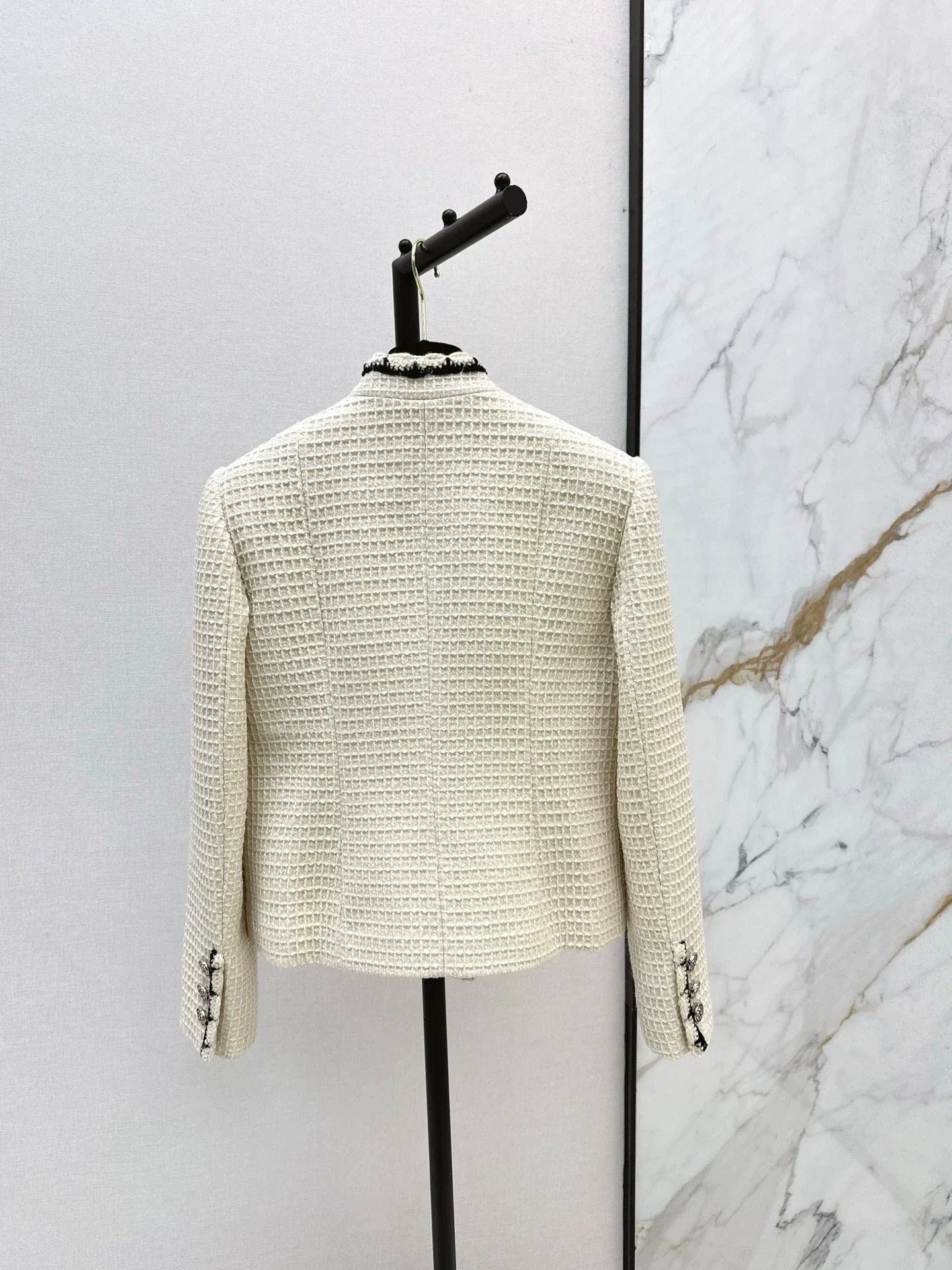 The fragrance style of Qianjin elevates the upper body by a hundred levels. The temperament adopts a three-dimensional concave convex texture, woven fabric texture, and online stand up collar method, which is very good to match. The entire design is simple and stylish, without any picky body shape