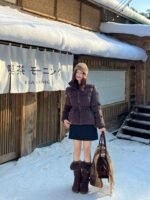 25 New drawstring waistband woolen down jacket(NAVY/BROWN)