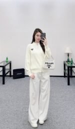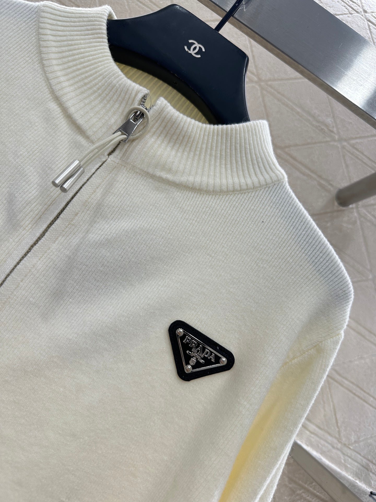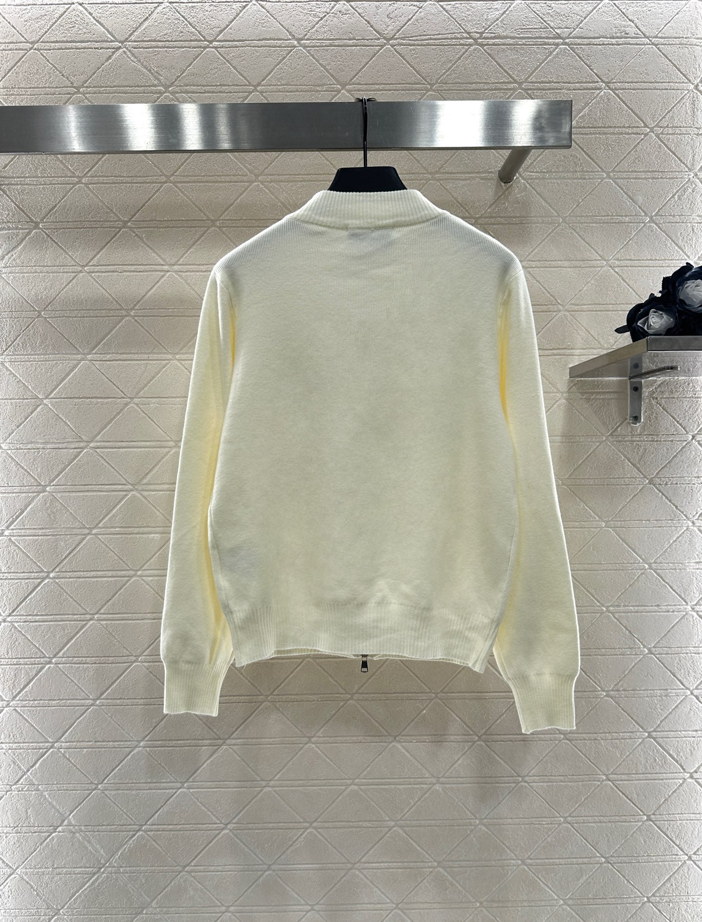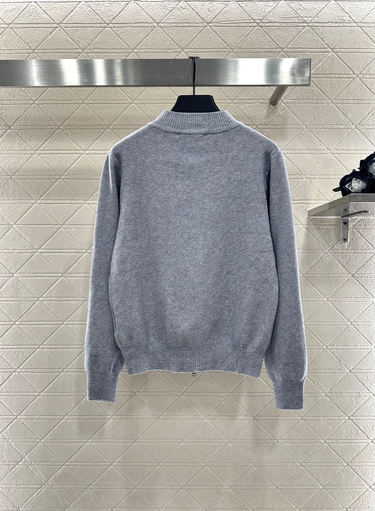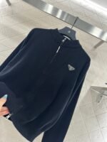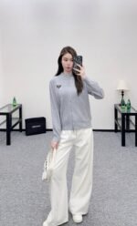 Weaved from cashmere and wool yarn, with a premium texture and comfortable softness, the zipper knitted jacket is tailored with unique details such as threaded grooves on the collar. The regular open zipper design is paired with a triangular metal logo on the chest, highlighting the brand’s style. The slim fit creates a fashionable and slimming look, enhancing the texture of details. The style is not limited to body shape or age, and is a simple and versatile daily outfit