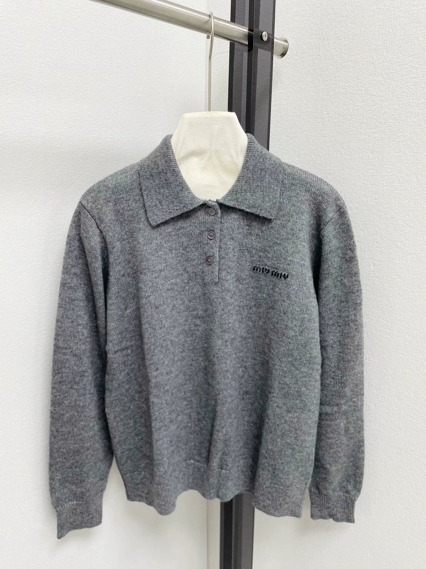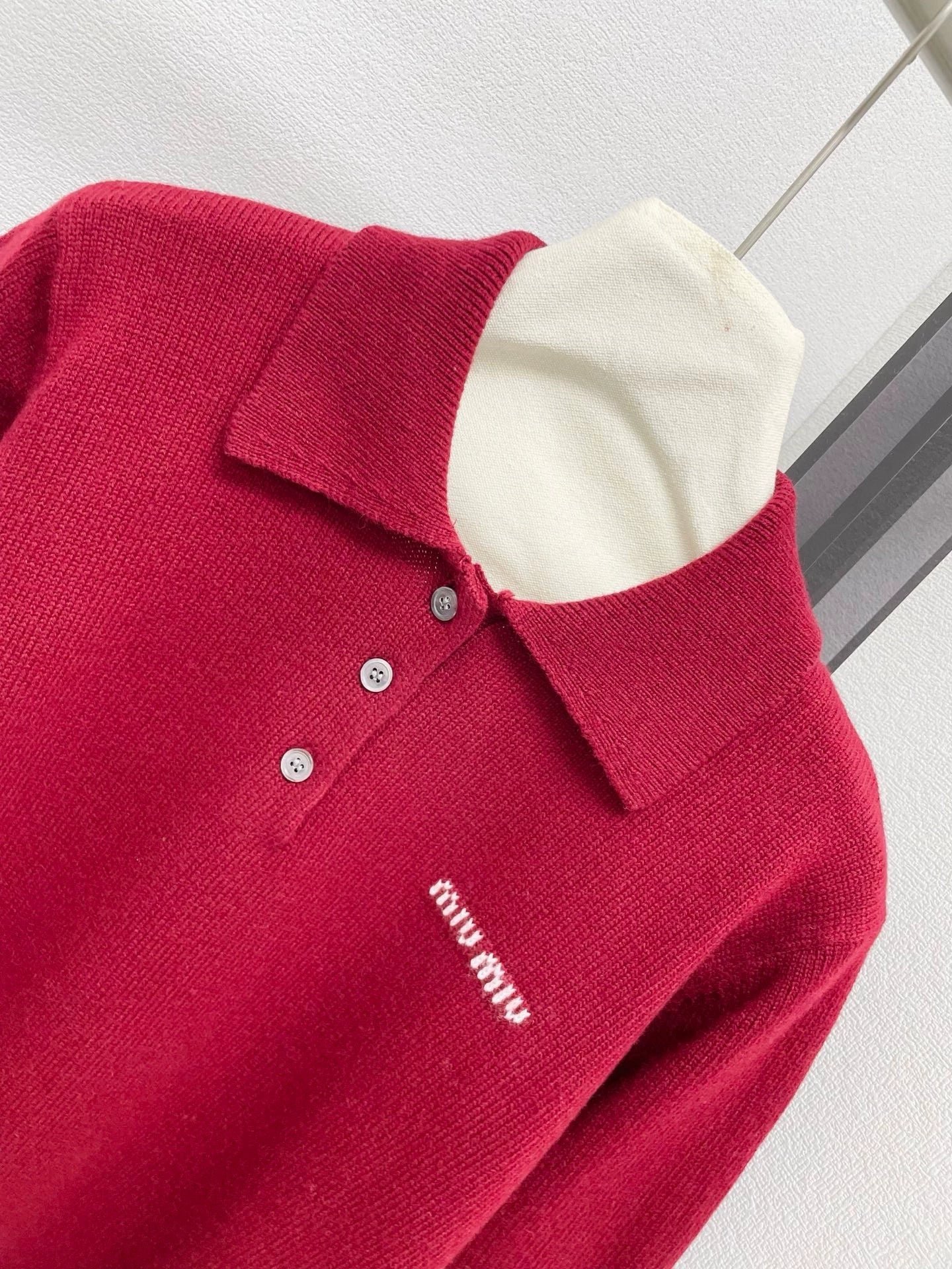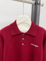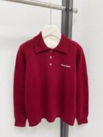New autumn and winter polo collar knitted long sleeved shirt with exquisite letter embroidery embellishment on the chest, classic wine red color, simple and atmospheric