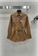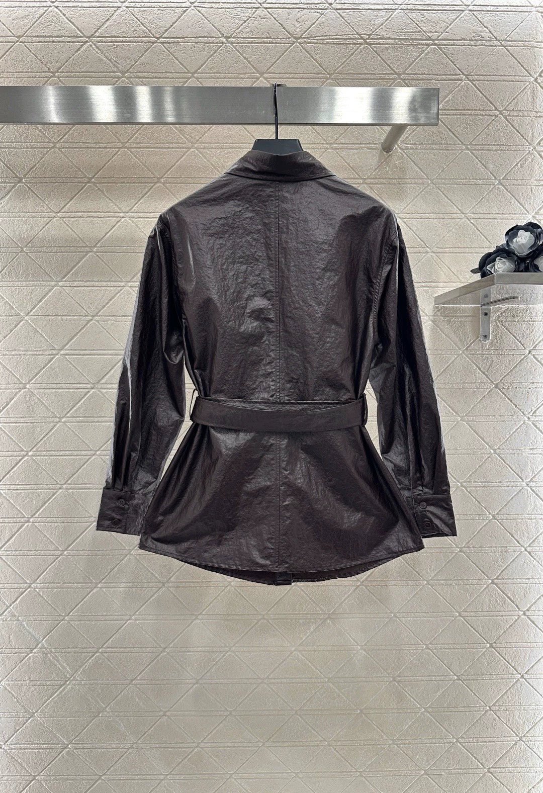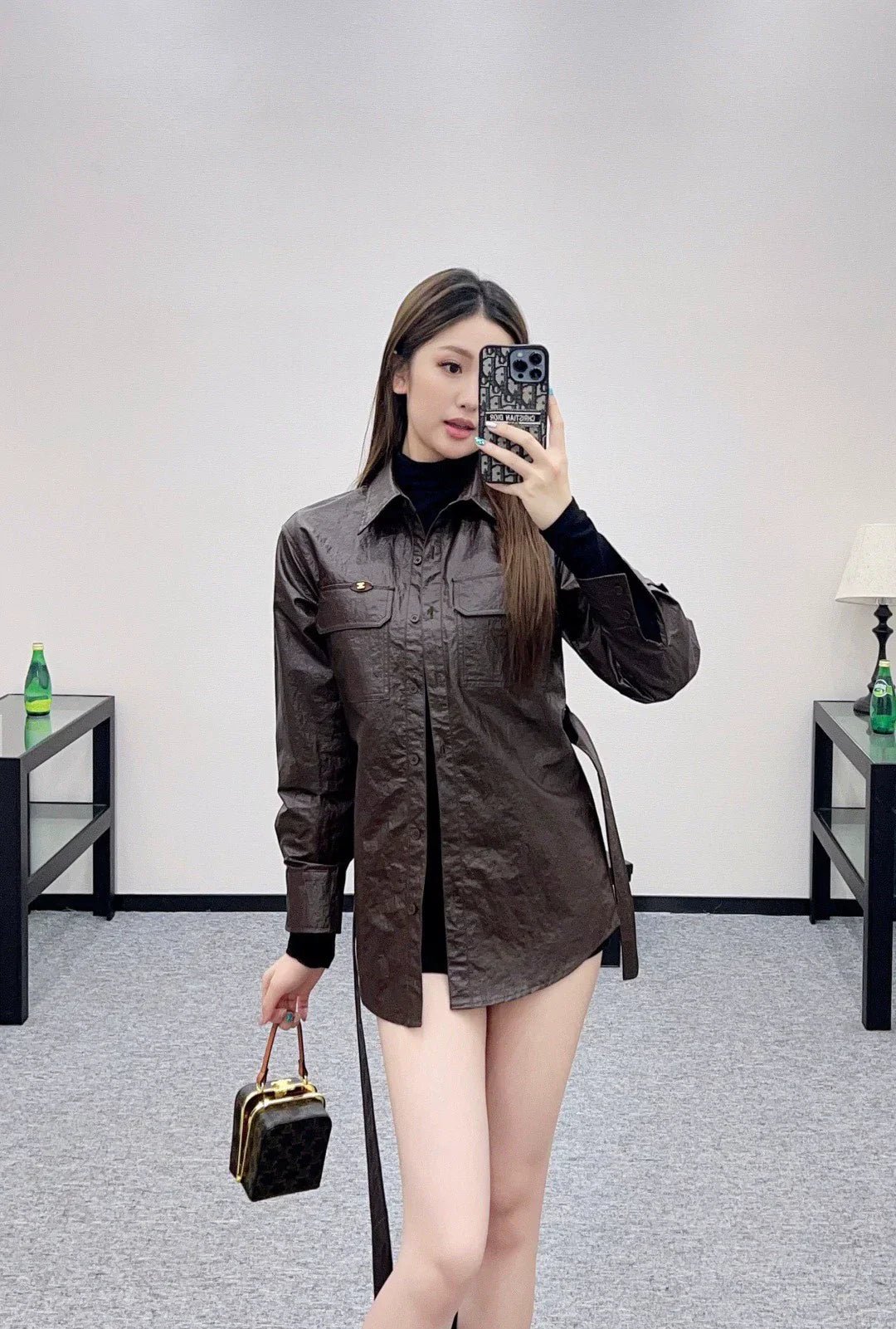 Latest anti leather material, differences in material characteristics, improvements in drawbacks, leather windproof and crisp luster performance, no need to wash or peel off, scratch resistant characteristics, high-quality texture, stylish wearing, stylish lapel, waist cinching jacket, overall straight tube loose design, high-end slimming, smooth surface with slight aging wrinkles, delicate and soft texture, cool and handsome upper body, three-dimensional cutting ➕ This fabric waistband divides the waist into curves, and the front chest flap pocket, combined with the golden emblem of the Arc de Triomphe, has a rich texture, making the outfit more trendy and cool