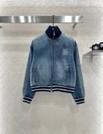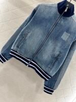 Cotton denim material, washed and vintage blue, baseball style denim jacket and pants set, with deep blue elastic thread design for a snug and comfortable fit, featuring letter printing on the inside and laser logo on the chest ➕ The letter ribbon print on the outer side of the shoulder sleeves and pants legs highlights the details, low-key highlighting the brand style. It is fashionable and simple, paired with wide leg flared pants of the same series, to modify the leg shape and elongate the proportion. The simple and durable details present a casual and free dressing style. The complete set is fashionable and stylish, and it is also great to pair separately.