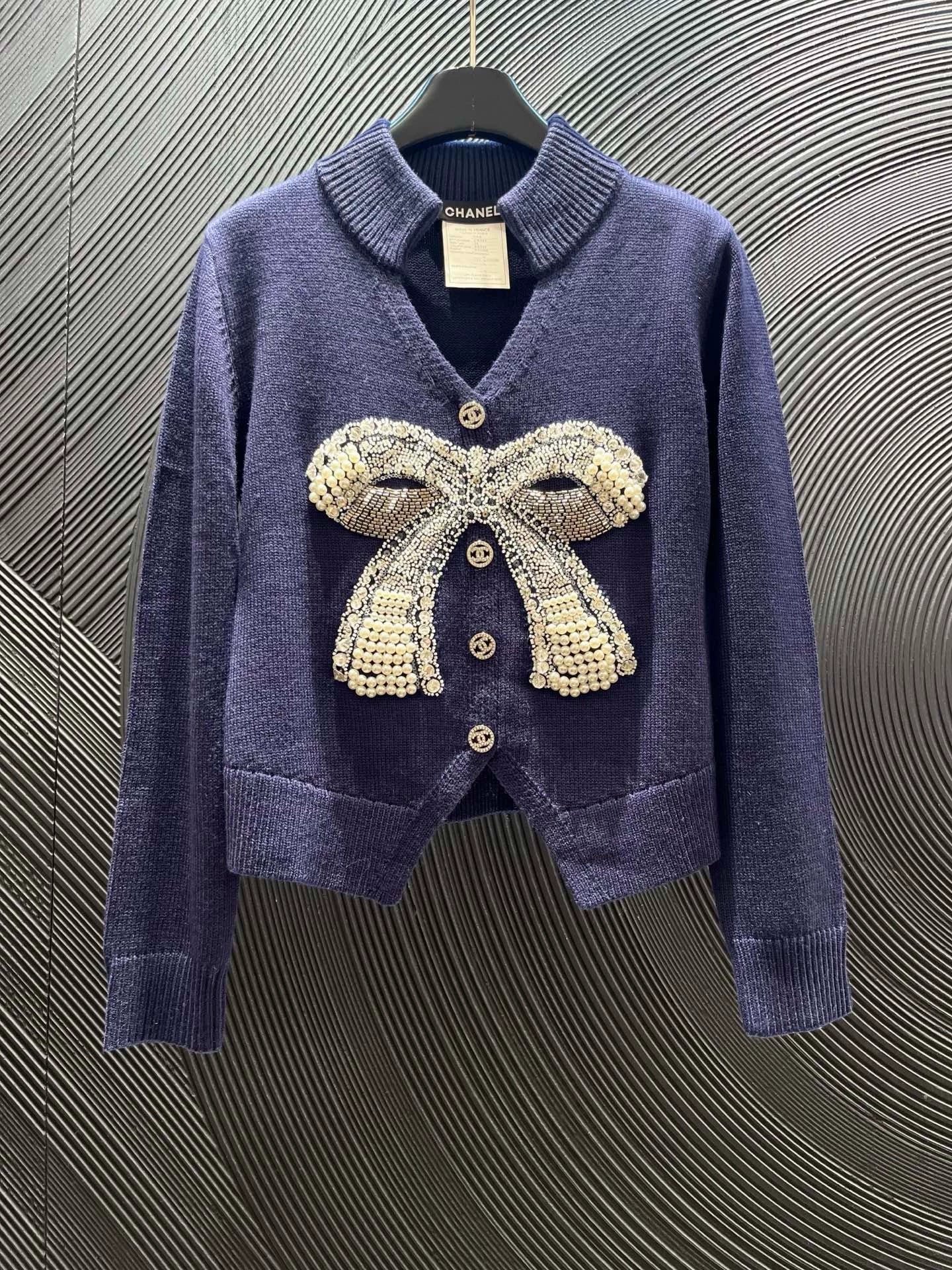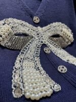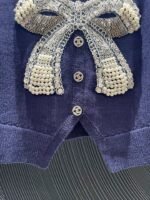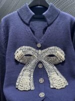 Adopting soft knitted fabric with a three-dimensional bow on the front and handmade nail beads, the delicate and layered design of the small V-neck is embellished with neck lines and button details, perfect for overall elegance and retro commuting or formal occasions, making it easy to handle