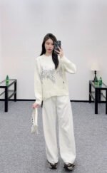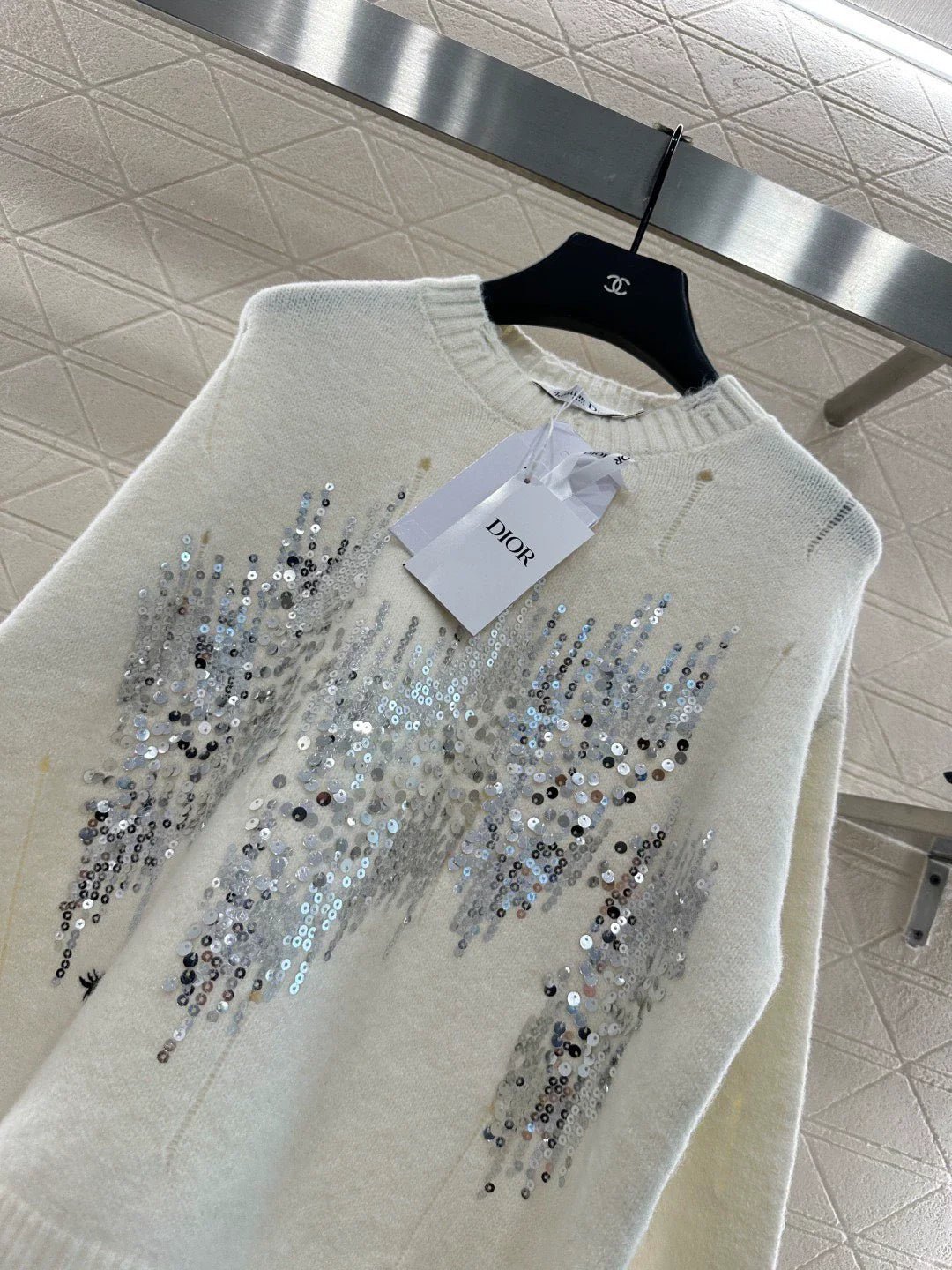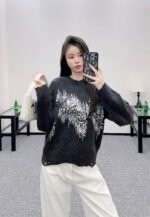 25fw Broken hole sequin round neck sweater