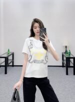 All cotton material is breathable and comfortable, with a full texture. The loose oversized T-shirt is cut to highlight the brand style. It is made of heavy-duty pure cotton and has a hanging feeling, presenting a slimming visual effect. YB has developed the whole garment to restore a refreshing color scheme. The chest uses printing technology and color matching to outline the purple flower butterfly pattern. The bottom row of letters strengthens the brand identity and creates a fashionable and high-end feeling, creating a personalized style