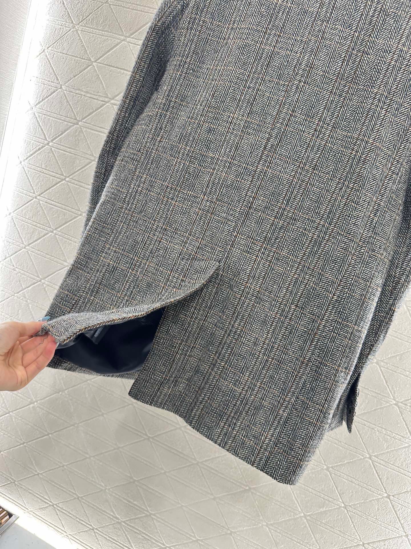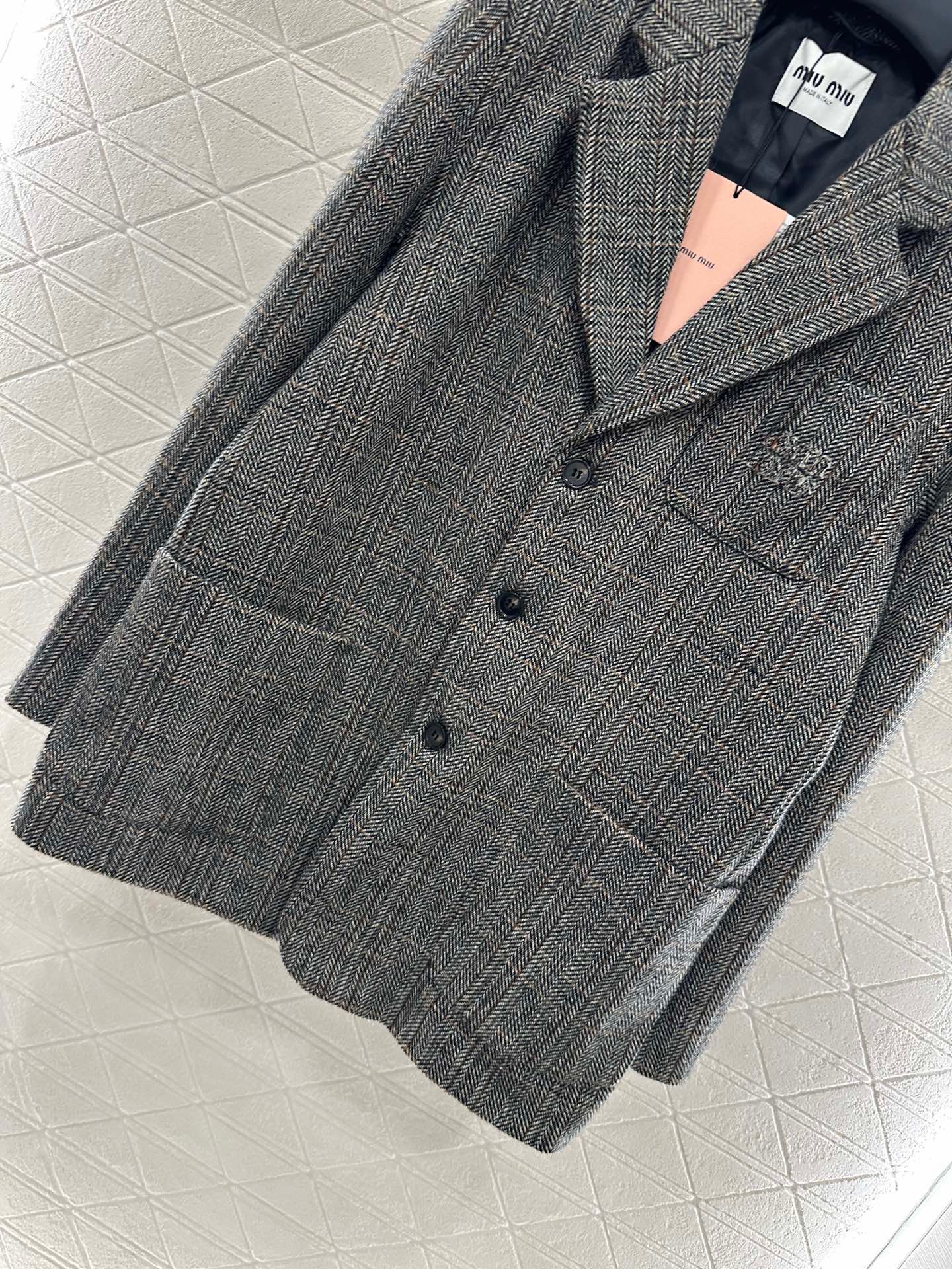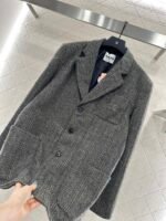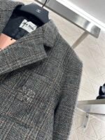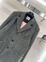 Made of finely spun wool material, with a glossy texture and stronger drape, the woolen look is high-end. The collar and shoulder of the suit are designed with a full grey grid pattern, complemented by flip pockets, showcasing a British artistic style. The chest letter logo highlights the design sense and adds style. Stereoscopic cutting makes dressing more inclusive, without choosing a loose and stylish figure, layering to create a fashionable and trendy dressing style