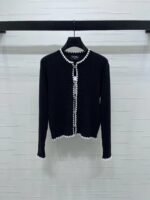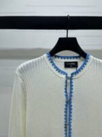 Woolen yarn weaving texture is high-end, comfortable, soft, round neck knitted cardigan cut with contrasting colors throughout the body, woven edge strips with texture and edge wrapping, making it elegant and stylish to wear. Versatile shoulder style, regular fit, accommodating body shape, fashionable and casual to wear