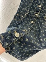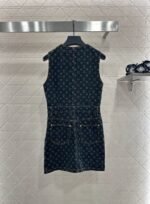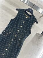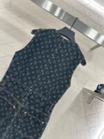 Twill cotton denim material, delicate texture, comfortable standing, vest skirt design, using cutting and details to enhance delicacy. The whole body is made of deep blue denim as the base, with laser four leaf clover letters embellished on top, highlighting the brand’s style, creating a fashionable style, full of personality and creativity. The waist cinched design creates a sense of layering, while easily outlining a graceful figure. The medium length skirt accommodates the body shape, making the upper body fashionable and stylish