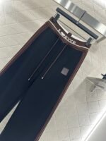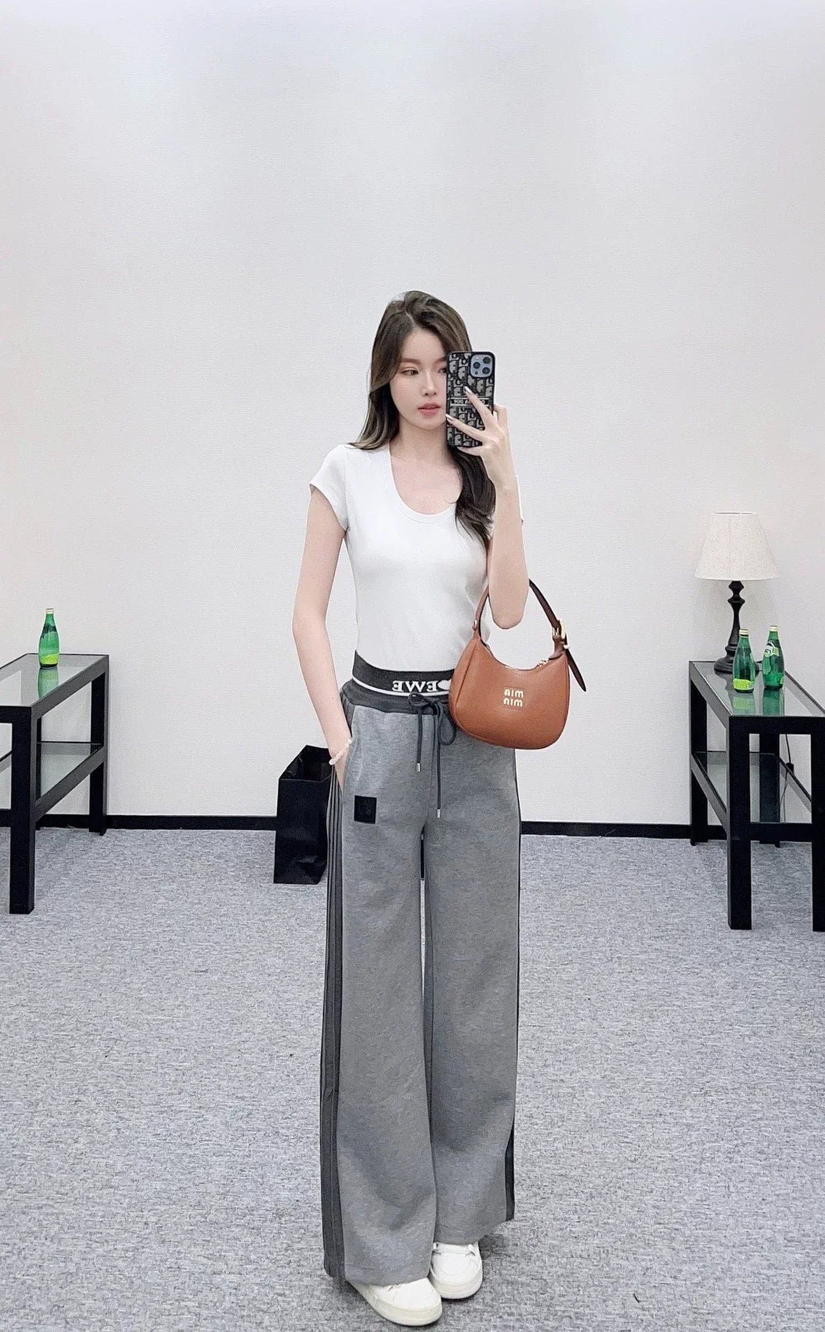 The fabric is soft and comfortable, hanging smoothly and stylish. The high waisted drawstring wide leg pants are designed with a snug elastic webbing to decorate the waist and create a casual effect. The striped contrasting color creates a relaxed and stylish style. The iconic letter logo at the waist instantly enhances the brand’s style, making it easy to control the outer side of the pants. The contrasting color edge is hooked and the contour is matched with the wide leg pants. The treatment is inclusive and decorates the leg shape. At the same time, the totem leather logo highlights the style and exudes a fashionable high street style
