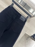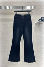 Twill cotton denim material, with a crisp texture and stylish dressing. The elastic slightly flared long pants are evenly dyed with enzyme water washing throughout the body, and the retro carbon black is versatile and durable. The hems are embroidered with camellia patterns and dotted with scattered black rhinestones, echoing the double C leather label on the back waist, highlighting the temperament. The three-dimensional cutting makes the outfit elastic and slim, making it stand out with charming long legs. It can be easily matched with makeup, elegant temperament
