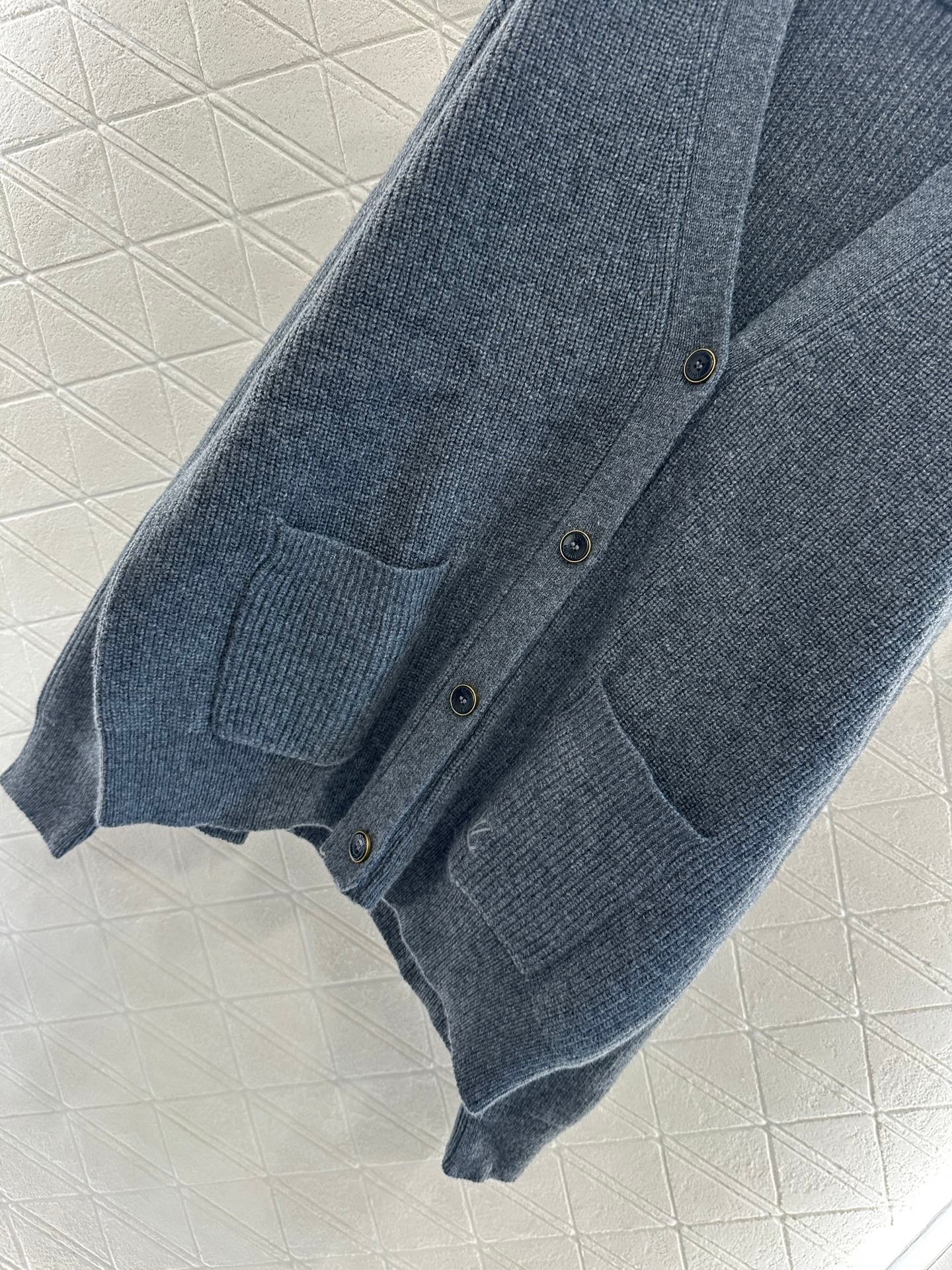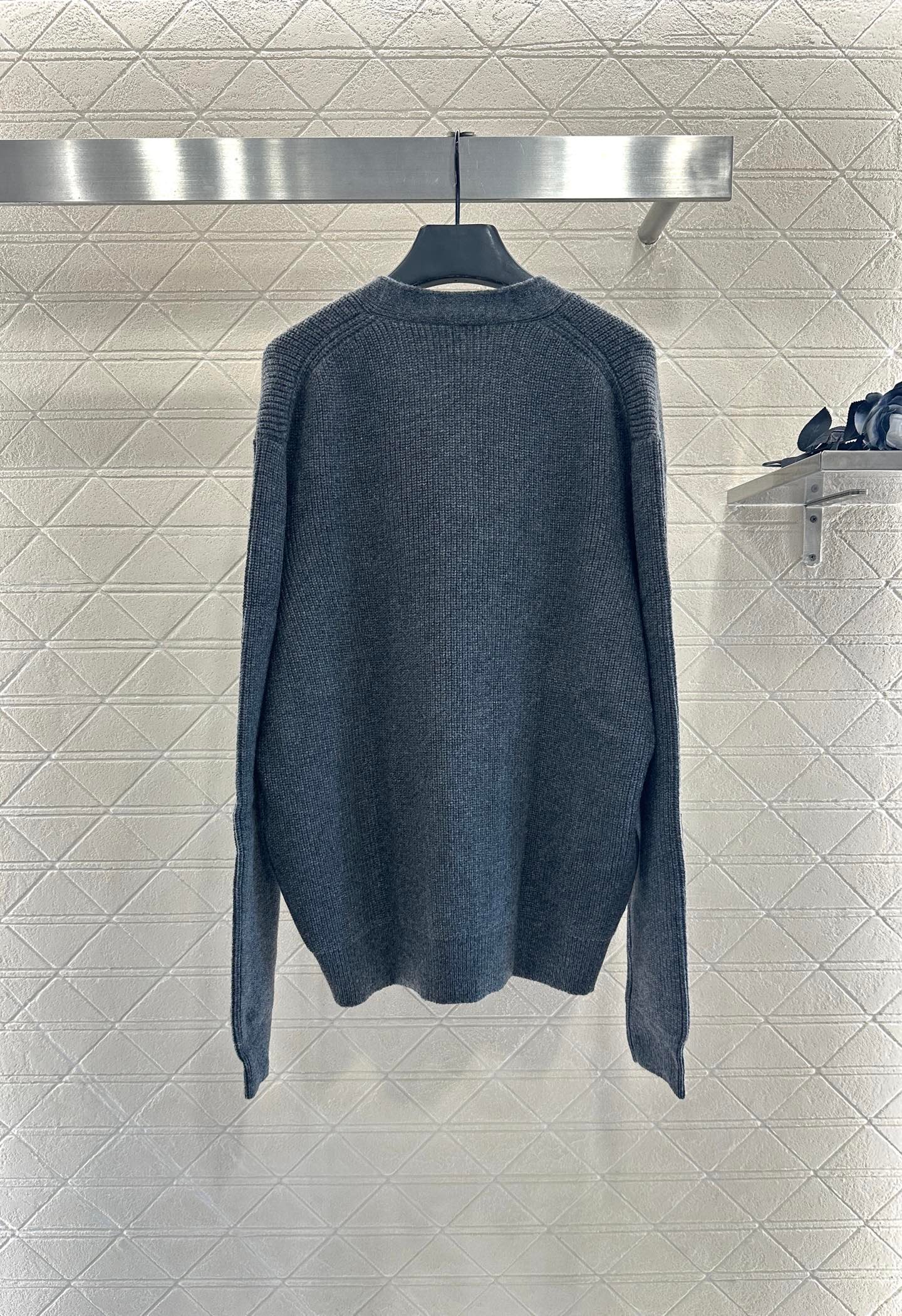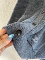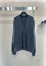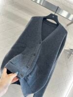 Crafted from cashmere yarn, it has a premium texture and is comfortable and soft. The V-neck knitted cardigan is cut in a light gray color scheme, with a full body artistic style. The threaded edging easily highlights the perfect detail texture. The letter embroidery decoration is placed in the pocket, exquisite and stylish, making the outfit elegant and fashionable. Loose silhouette oversized shoulder design, accommodating body shape, fashionable and casual to wear.