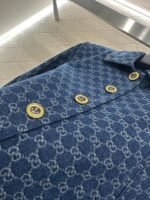 Jacquard material, premium texture, crisp and stylish, collar and shoulder jacket silhouette, front placket engraved with boat anchor ⚓ ️ Buckle, short cut for a slimming and stylish look, full body double G jacquard print ➕ The buckle details on the two waisted side of the horse are understated and luxurious overall. Full range details echo the brand’s style, showcasing the elegance of a knowledgeable old man