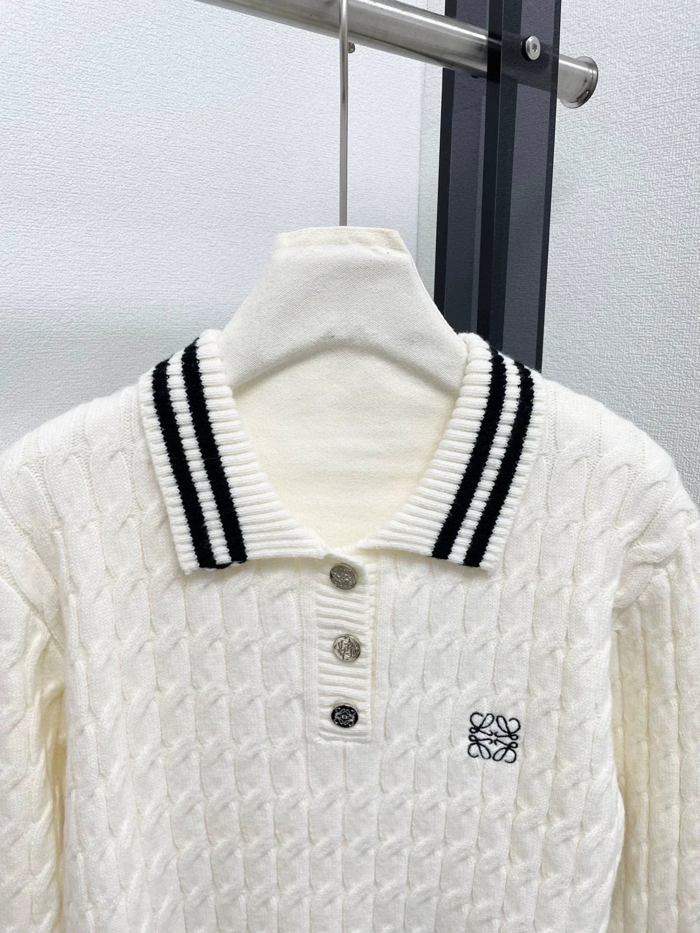 Soft and comfortable, Fried Dough Twists knitting technology, classic lapel design. Embroidered logo on the chest, embellished with metal buttons, simple and elegant.