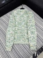 Made of high-quality cashmere fabric, with a soft and comfortable feel, and a loose and stylish design. Exquisite floral knit design, with green background embellished with colorful flowers, fresh and elegant. Round neck long sleeved style, with a tight hem design, slim fit and slimming effect