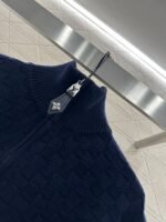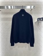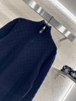 Woven from cashmere and wool yarn, with a premium texture and comfortable softness, featuring a zippered high neck sweater cut and a dense grid knit texture for warmth and wind resistance. The leader’s wide mouth and threaded edging complement the hem of the garment. Four leaf clover leather zipper on the chest ➕ The back collar letter engraved leather buckle decoration echoes, highlighting the brand tone. The standard shoulder style is versatile and simple for autumn and winter daily wear, handsome and fashionable