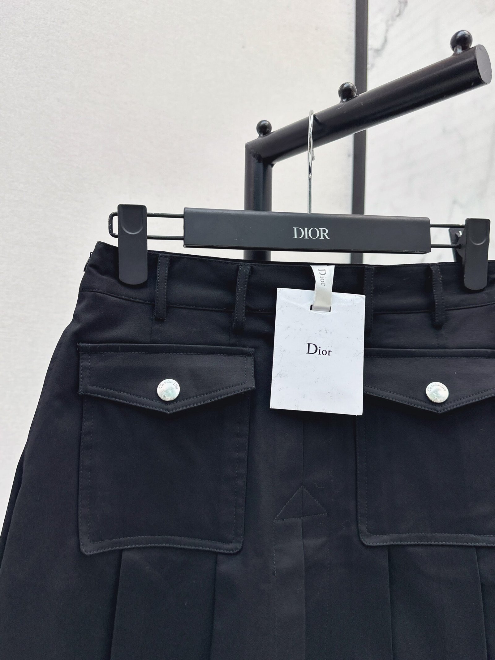Twill cotton material with glossy and comfortable texture, superior cutting, smooth and flowing high waisted pleated half skirt, symmetrical flip pocket embellishment, waist and crotch straight tube, close fitting skirt, neat and pleated hem, and knee shaped round buckle decoration with engraved letters and logos to highlight brand style, college style, age reduction, caring, moderate length, exposed waist and calf