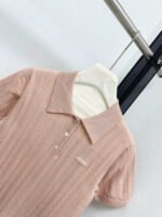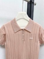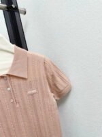 The fabric is made of 100% cashmere, which is soft, comfortable and textured. Exquisite wheat grain texture design, small logo embellishment on the chest, short sleeved collar design, and vertical pit bar hollow craftsmanship.