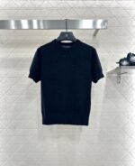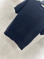 Wool yarn weaving texture is high-end, comfortable, soft round neck shoulder short sleeved sweater with hollowed out texture outlining letters and logos that complement each other in a fashionable and charming way, highlighting a gentle temperament. The edging is tightened with elasticity, highlighting a high-end tone. The regular version is not picky about body shape, age, four seasons, daily life, simple and versatile