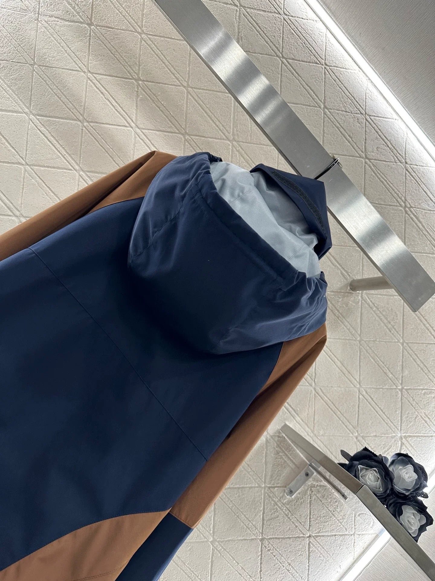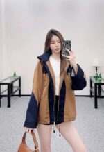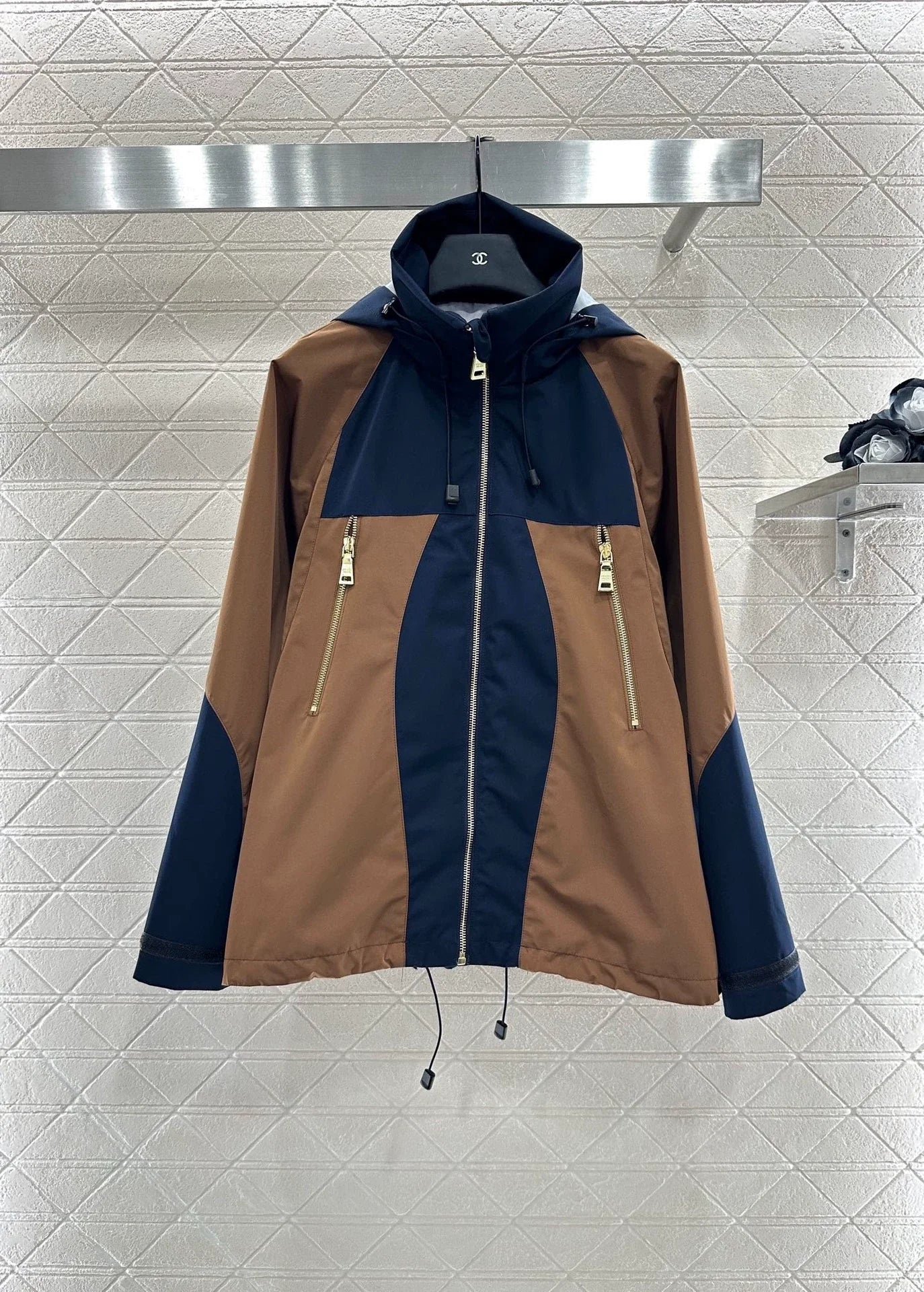 Imported assault nylon material with premium texture, crisp and stylish hooded zipper jacket with symmetrical distribution in navy blue ➕ Dark brown loose and neutral, full of outdoor leisure atmosphere. The hem presents a natural micro A expansion shape with drawstring elasticity and easy adaptation to the body shape. The large capacity pockets on both sides are illuminated with details