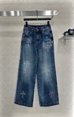 25fw Hot stamping denim cross pants