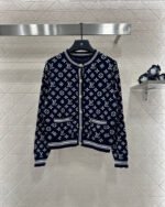 Delicate texture, comfortable to wear, round neck knit cardigan cut, all over clover logo ➕ The letter jacquard distribution is combined with the edging to outline the same color stripes, forming a collision and matching elastic fabric that fits the body shape and makes it look slimmer. The front placket is decorated with a round buckle and engraved logo to showcase the brand’s tone