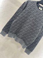 Weaved with silk and wool yarn, the texture is high-end and comfortable. The pullover top is cut and decorated with the iconic double F-letter pattern throughout the body, creating a collision of colors to showcase the brand’s personality and the high-end sense of wearing. The collar is wrapped with contrasting colors, allowing simple styles to be worn with exquisite personality and a relaxed tone, showing a light luxury and fashionable temperament. It can be worn alone or in layers, and is the first choice for autumn and winter fashion.