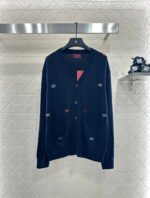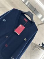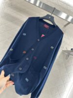 Woolen yarn weaving, premium texture, comfortable and soft, V-neck knitted cardigan cut, all body artistic gray black ➕ Colorful double-G color scheme, combined with threaded edging, easily highlights the perfect detail texture, exquisite and stylish, making the outfit elegant and fashionable. Loose silhouette oversized shoulder design, accommodating body shape, fashionable and casual to wear.