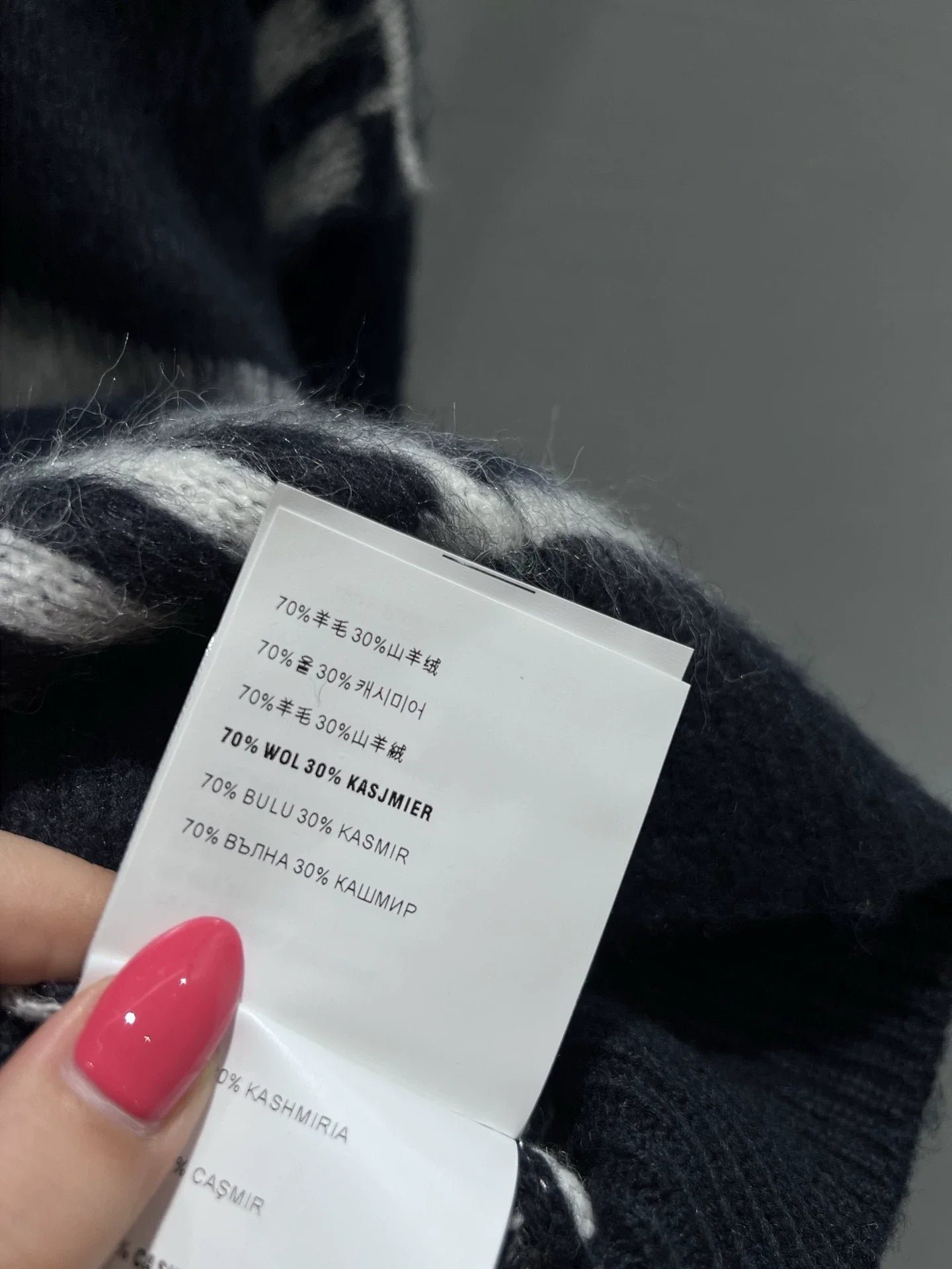 Using a 70% wool and 30% cashmere blend process, the entire piece has a delicate and soft texture