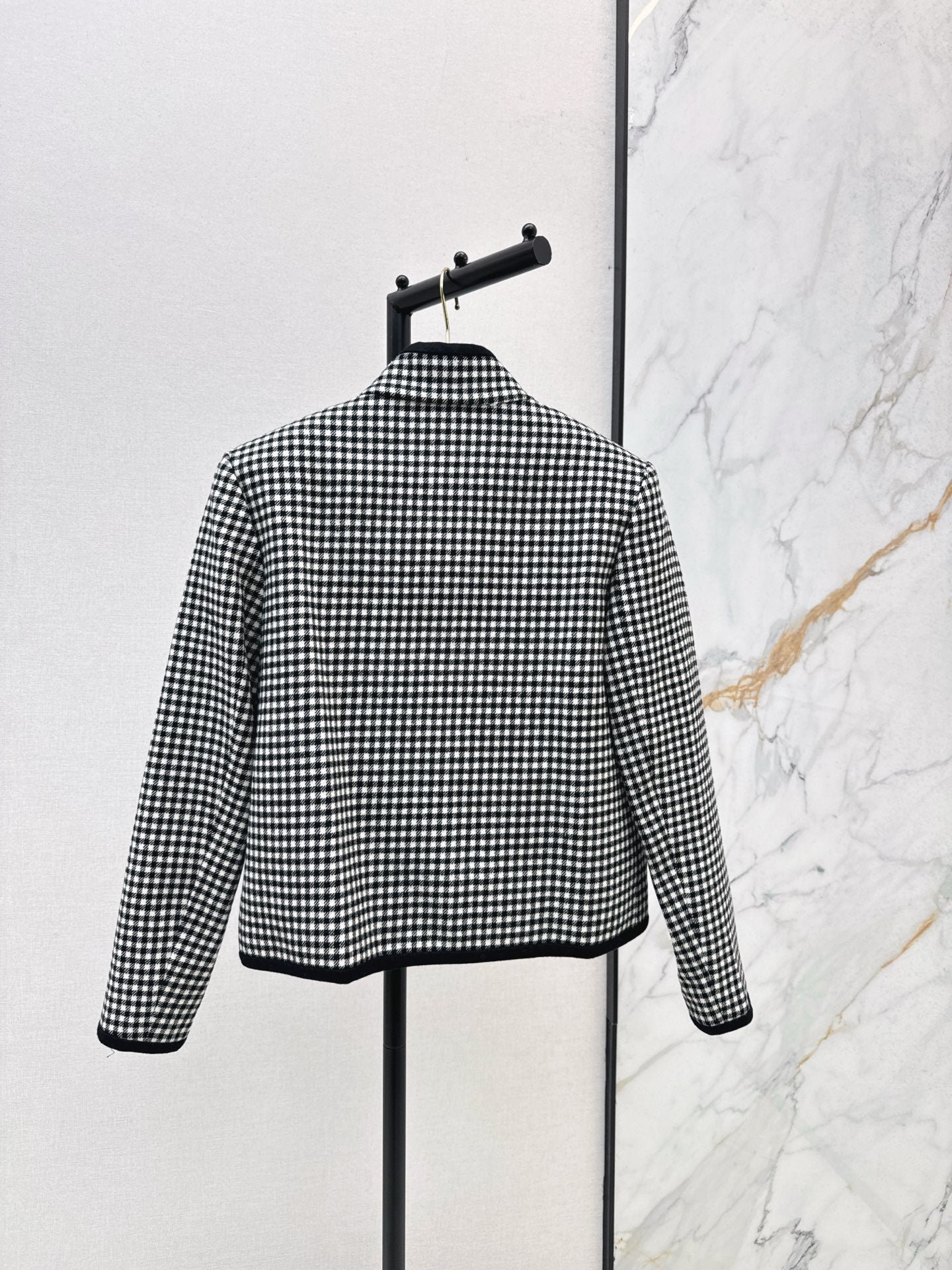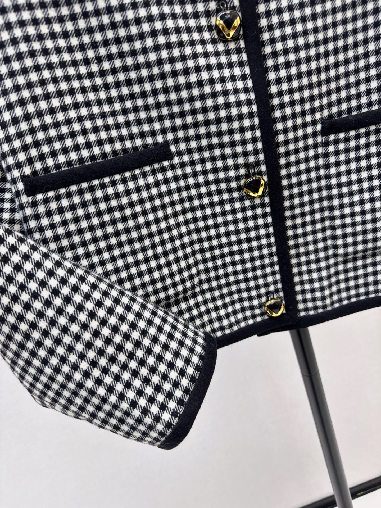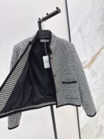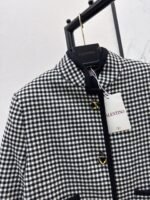 Made of custom-woven wool plaid fabric, the black edging and checkered craftsmanship create a sense of layering. The V-shaped button decoration is a plus. The style is versatile and hides fat and makes you look thinner. It is definitely a must-have for daily use or commuting. The minimalist temperament and fashionable style are very tasteful without losing the romantic atmosphere. It gives you the feeling of being rich and wealthy.