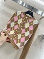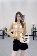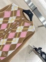 Custom YB wool yarn weaving, delicate texture, comfortable and easy to wear, round neck knitted cardigan cut, the main body and sleeves are distinguished by solid color, with diamond pattern distribution, combined with the bright collision of different color lines, creating a literary and artistic college feel. Paired with elastic fabric, it accommodates the body shape and makes it look slimmer. The hem is decorated with crocheted letter logos on the waist to show the brand’s tone. The versatile style is not picky about age and skin color, and it is more relaxed and has a holiday feel. The upper body is suitable for a youthful and fashionable style.