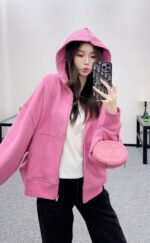Custom YB twill cotton material with a lustrous texture and high-quality appearance. Loose-fitting hooded jacket with fleece lining for warmth and comfort. Adjustable zipper opening for a casual feel. Large pockets and slightly flared hem create a relaxed, street-style feel. Letter embroidery on the back highlights the brand’s style. Stylish and simple yet fashionable. Customized fabrics and accessories.
