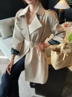 🤎The windbreaker fabric with a very crisp feel + customized plaid lining. The mid-length version is the most practical to wear. It can be worn by anyone, regardless of height, weight or size. It automatically hides the flesh and gives a sense of temperament. It gives a lazy and casual visual sense. The windbreaker is really not boring to wear and has a sense of style.