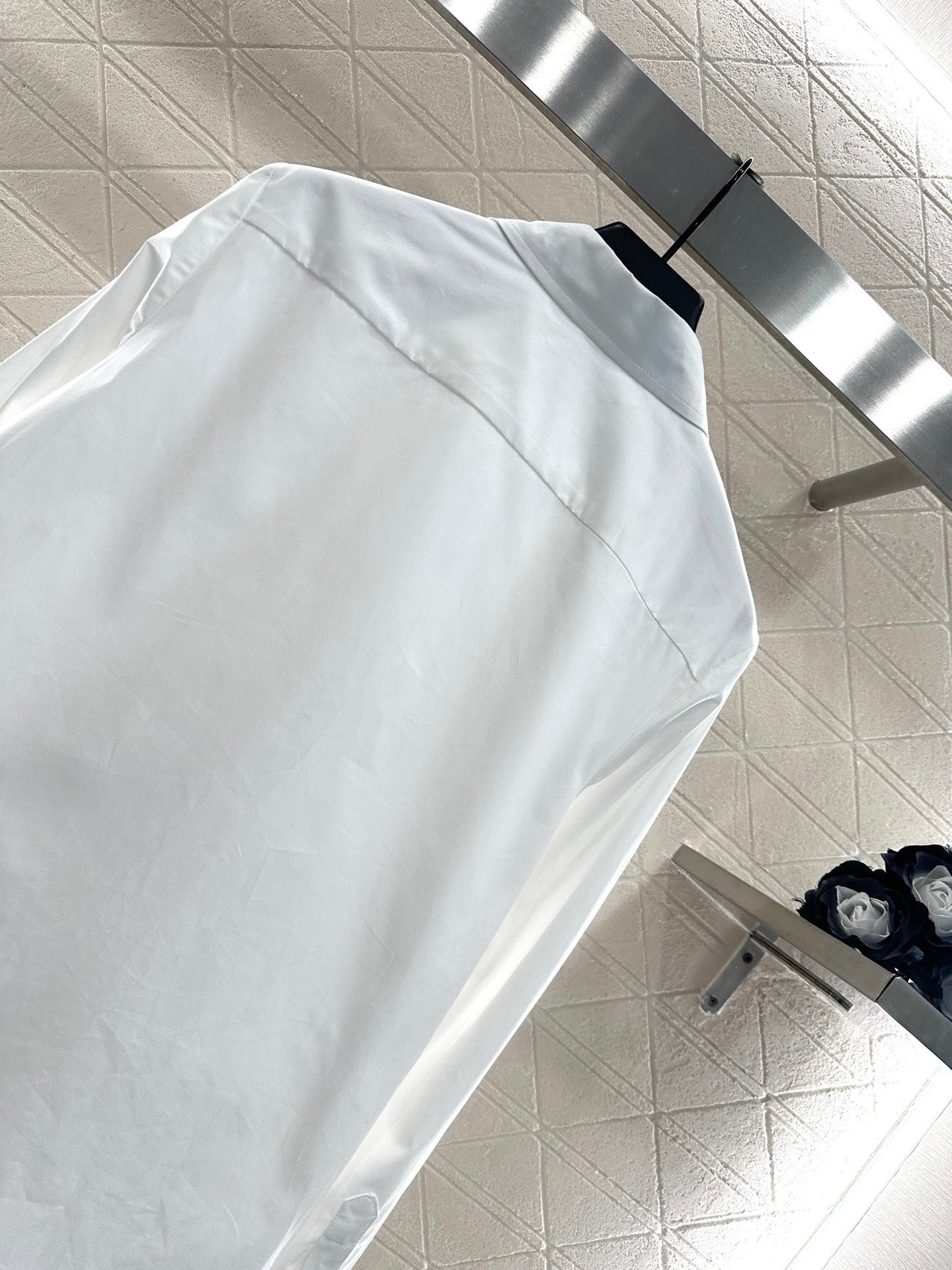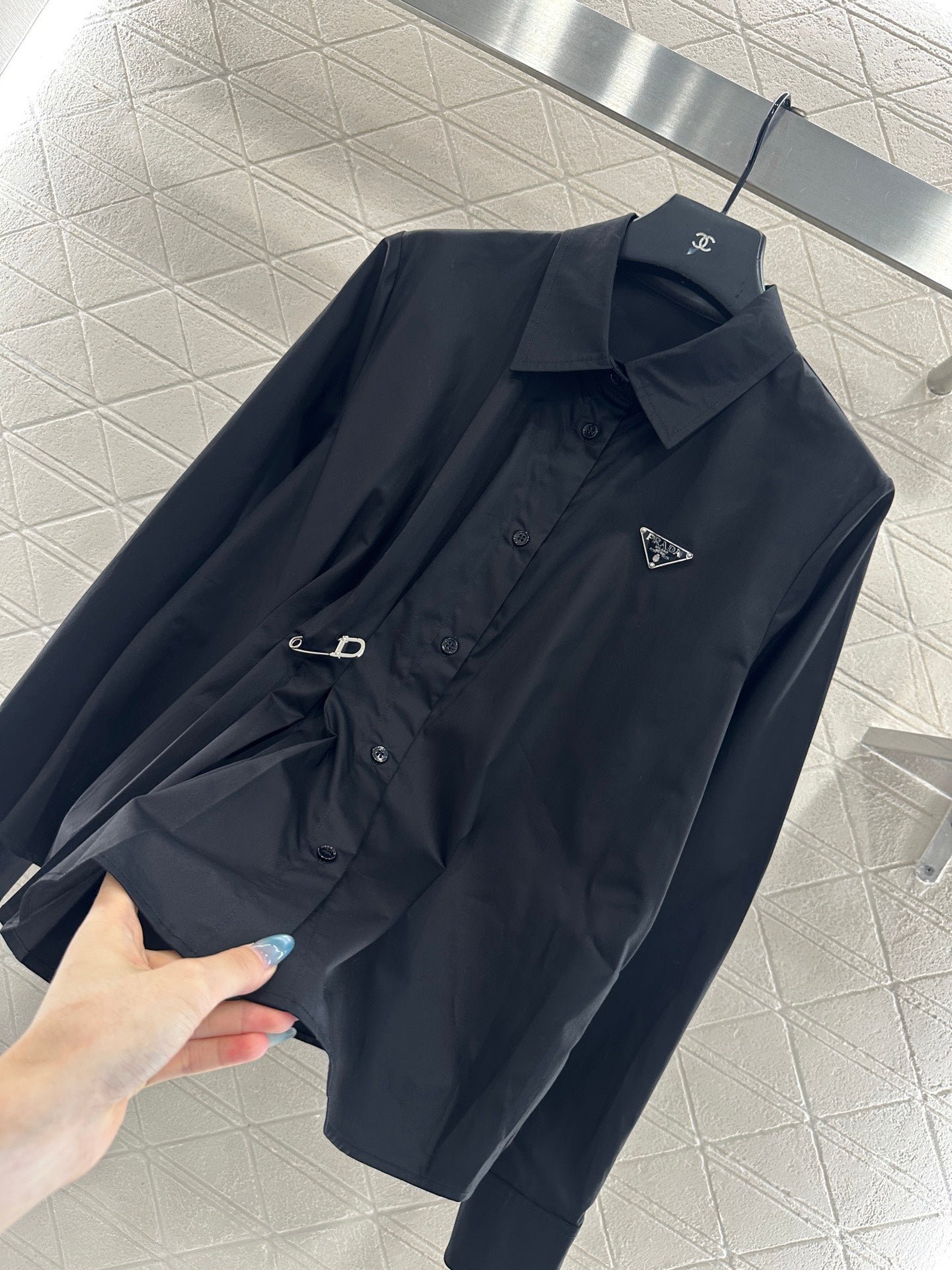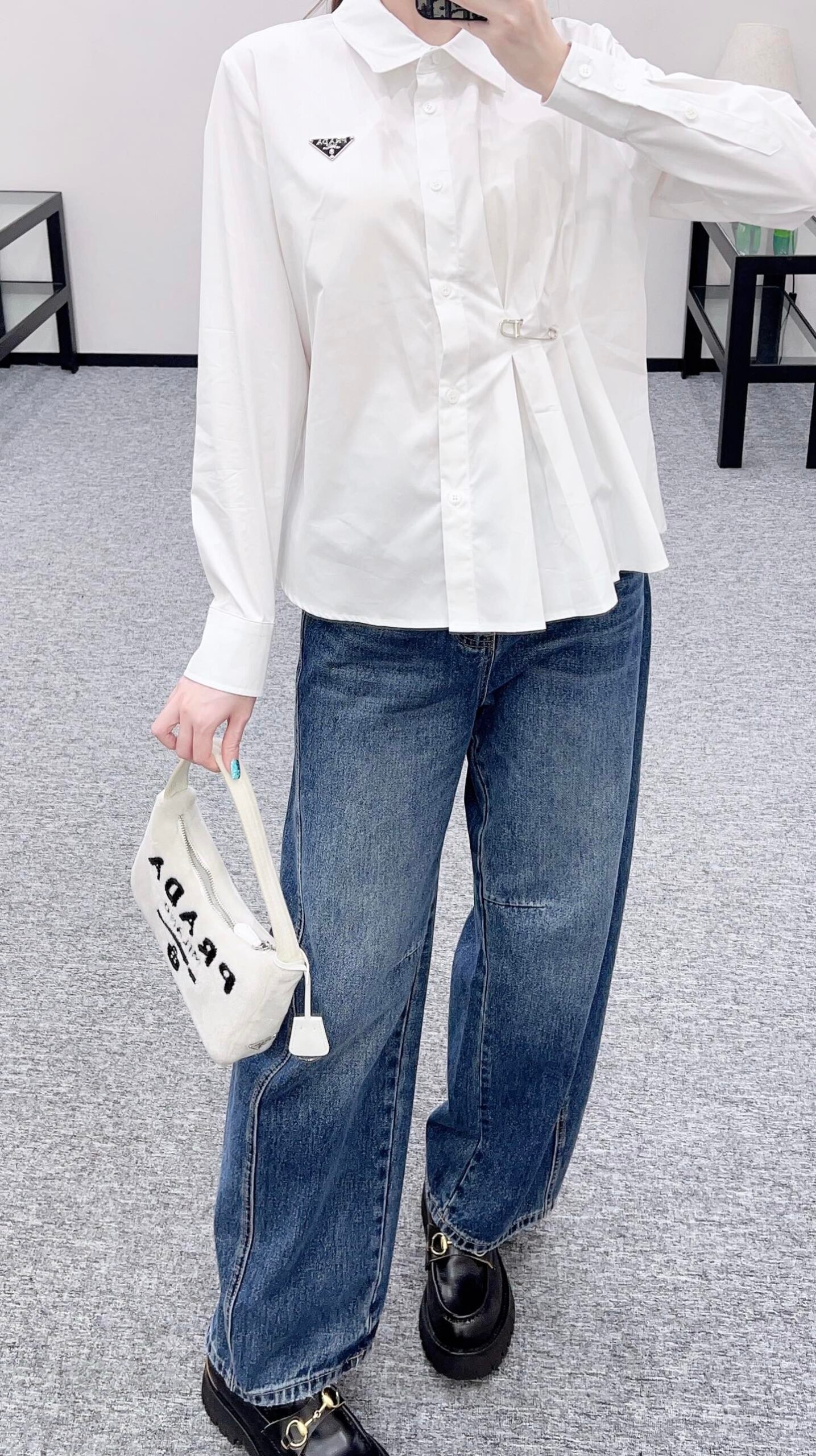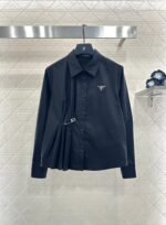Customized YB twill cotton material, comfortable and delicate texture, full of breathability, lapel shirt version, neat and slim cut, all solid color, versatile and durable, one side of the front is pinned through to form a design pleat, loose or tie play more fashionable, with the triangular letter logo on the chest, old money fashionable, the upper body can be easily worn with a sense of luxury. Customized surface and accessories