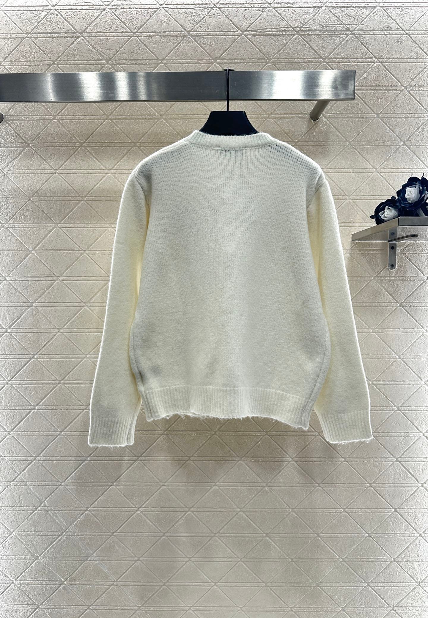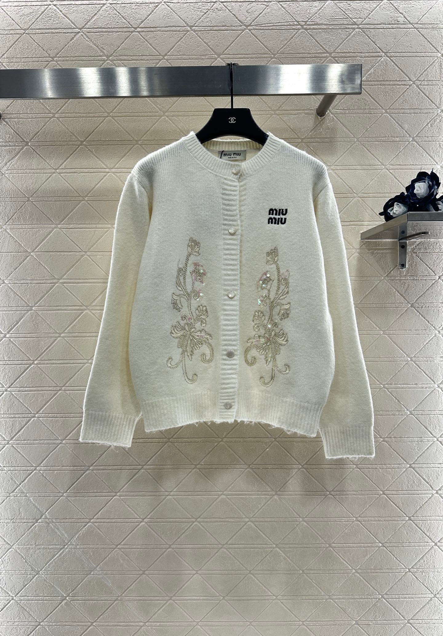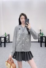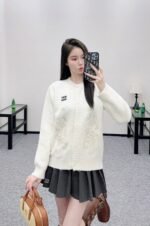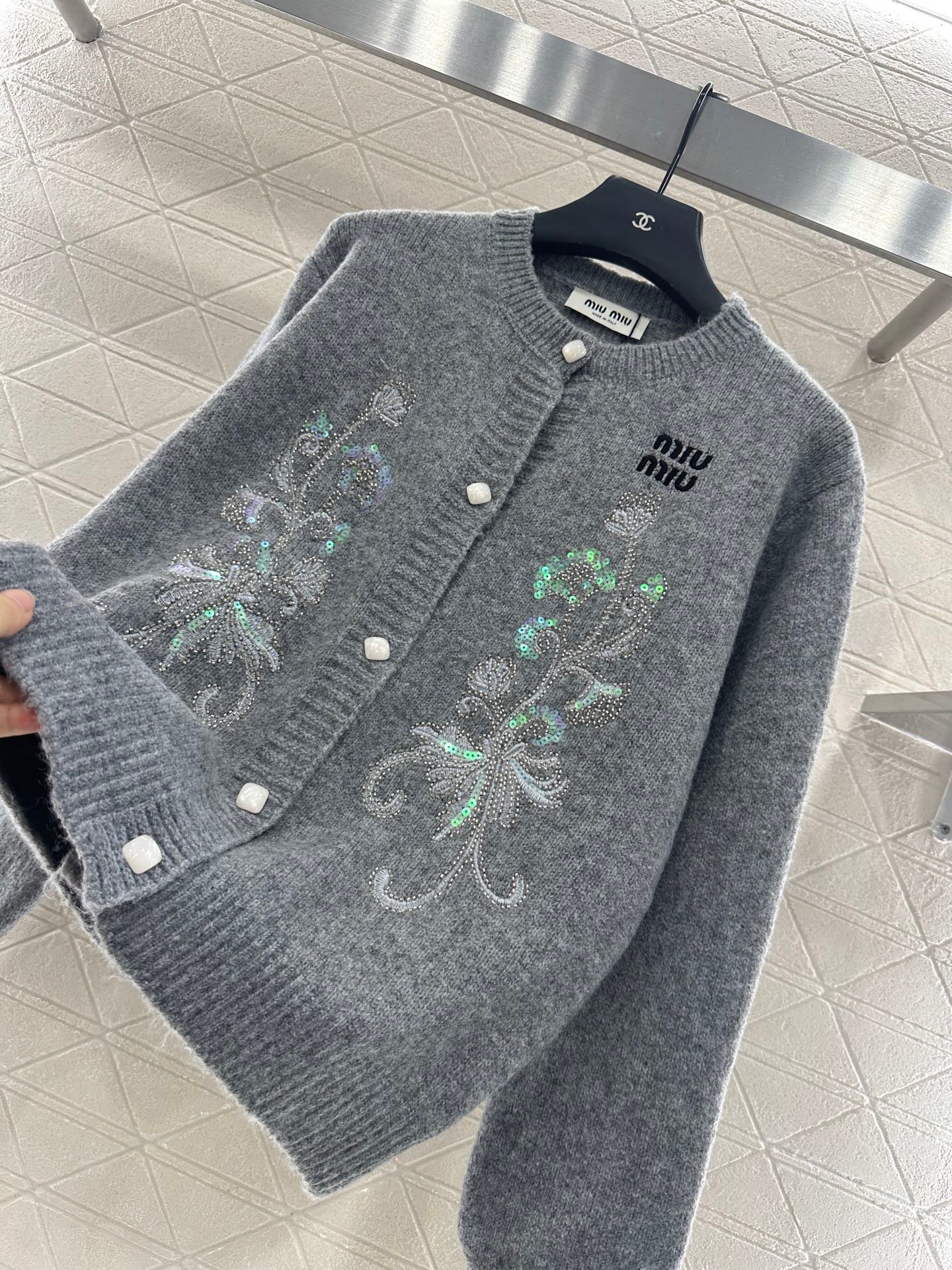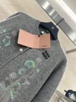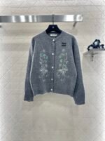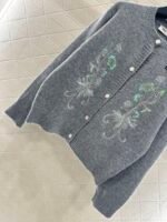 Custom YB wool yarn weaving, delicate texture, comfortable to wear, round neck knitted cardigan tailoring, large symmetrical embroidery + sequin craftsmanship, outline the floral pattern, shining gorgeous, with the letter logo on the chest, more noble, the hem is outlined in the same color to create a collision, with elastic fabric, fits the body shape more slimming, showing the brand’s tone, versatile style regardless of age and skin color, more relaxed, fashionable upper body