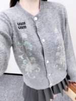 25fw new round neck embroidered knitted cardigan