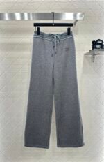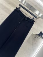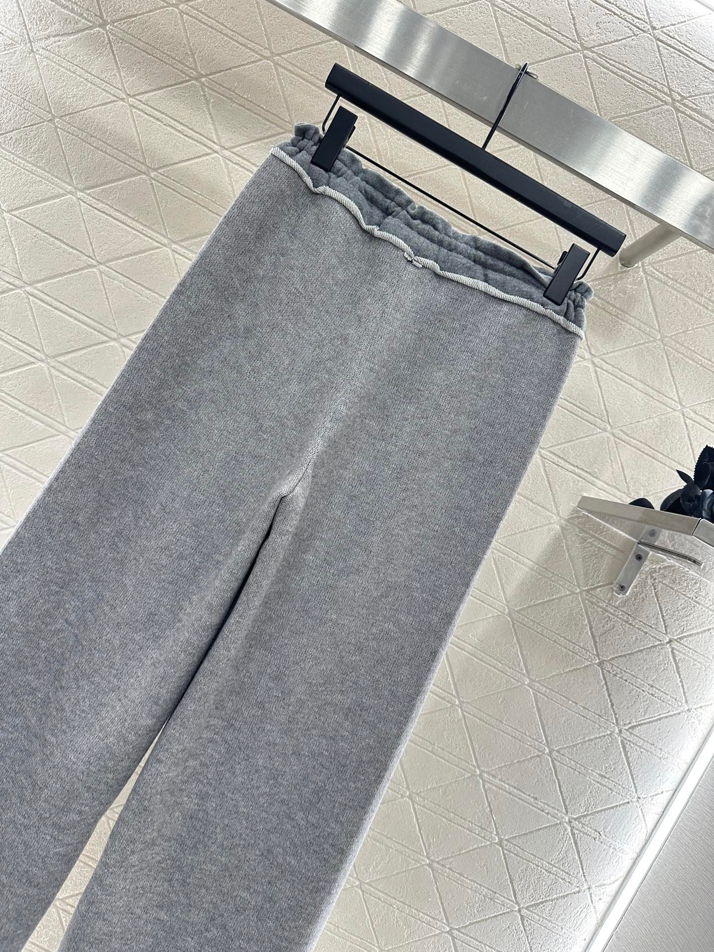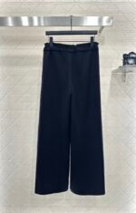 Customized YB imported wool blended material, the fabric is soft and comfortable, drapes smoothly and stylishly, high waist drawstring wide leg trousers version, use the splicing raw edge to decorate the waist line, create a youthful lace effect, the iconic letter logo on the hip instantly enhances the brand style, easy to control, paired with wide-leg straight trousers, accommodating and modifying the leg shape, showing the style, wearing a full high street fashion style, a pair of four seasons versatile trousers, vacation date daily