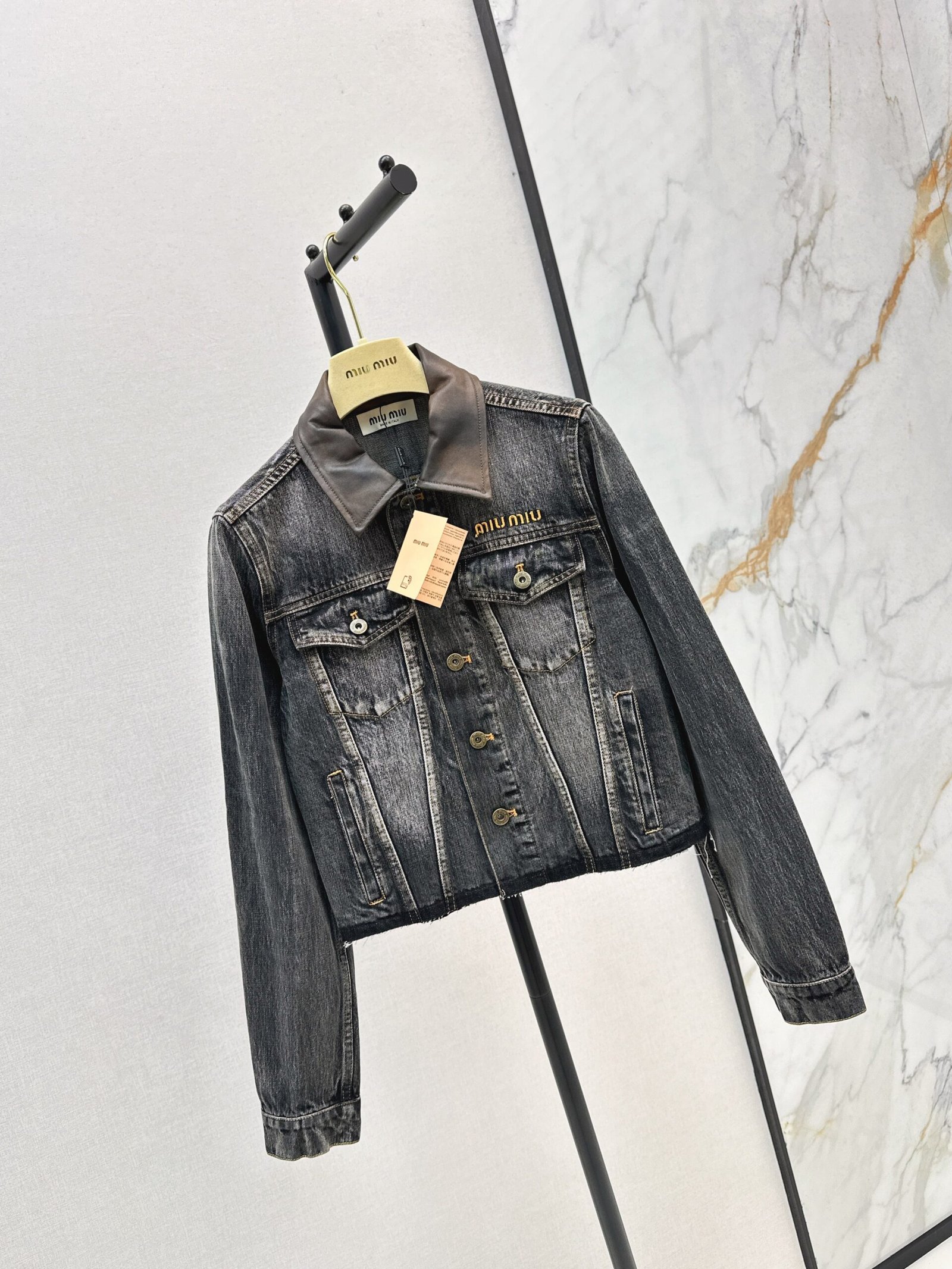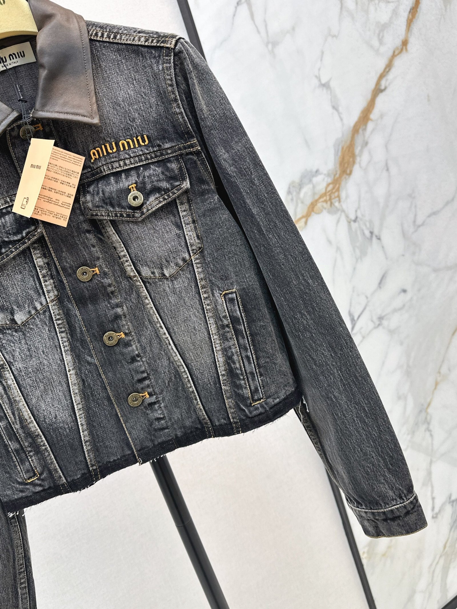 25fw Old leather collar denim jacket