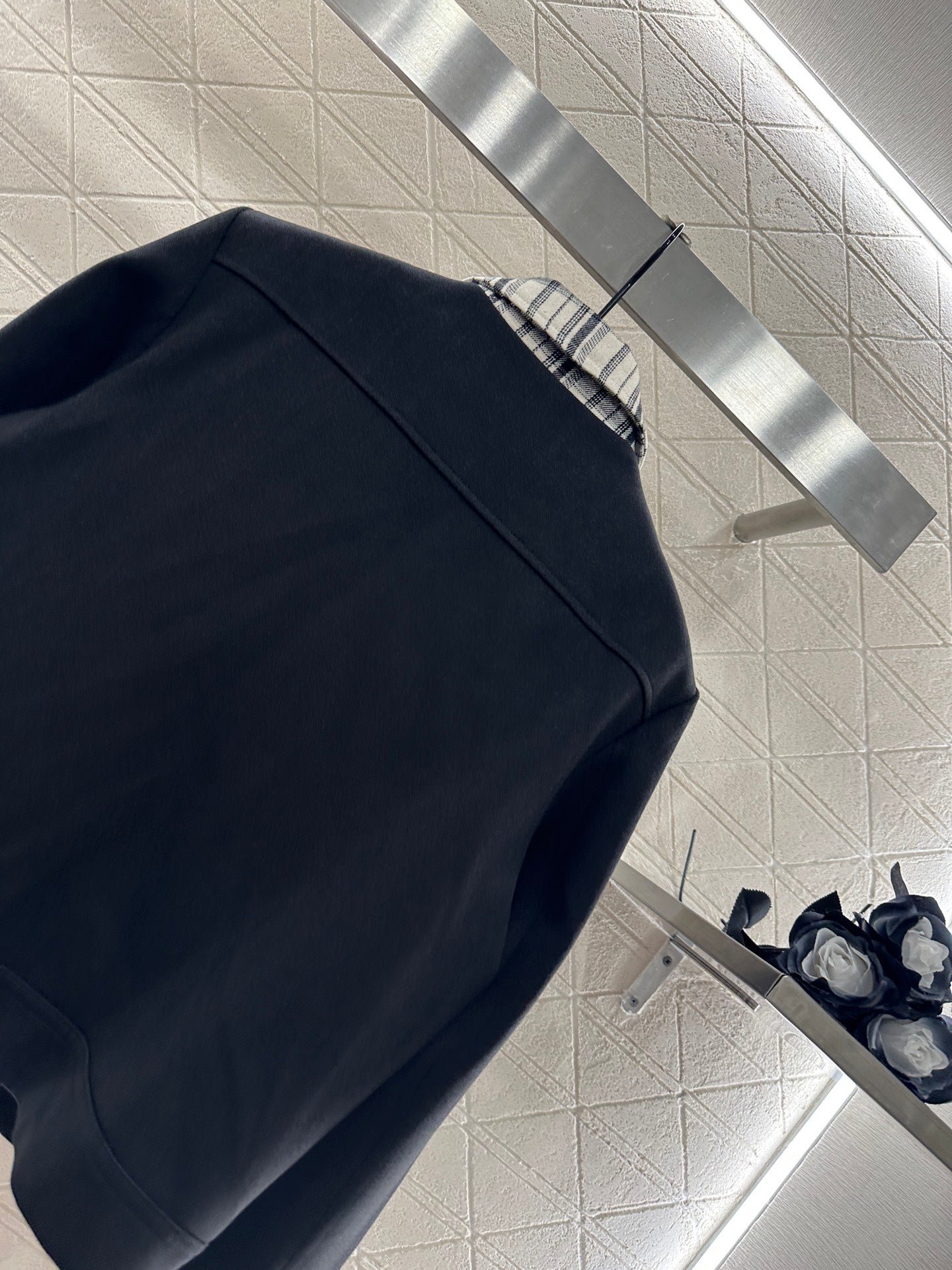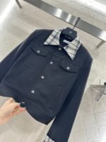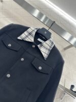 Made of wool material, with a high-end texture and stylish dressing, the front shoulder lapel jacket features a grid pattern on the collar and cuffs, setting a simple and fashionable tone while showcasing the brand’s high-end style. The entire body is embellished with engraved letter round buttons, and the symmetrical flap pockets are rich in details. Paired with bee CD embroidery to embellish details, the cut is neat and decorates the body, easily highlighting the high-end and elegant style. It is fashionable and stylish to wear, suitable for daily commuting
