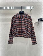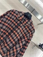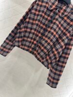 Cotton wool material, glossy texture, flowing and stylish, collar jacket and skirt set, covered with red, orange and black checkered patterns throughout the body, zipper and open top design, leather buckle engraved with letter logo, complementing the waist leather label, low-key highlighting the brand image, combined with flower bud inward elastic hem, the texture is more casual and fashionable, simple and high-end. Paired with a one-piece pleated half skirt from the same series, the waist is neatly pleated, and the front panel and pleated design are full of a sense of simplicity and durability, presenting a casual dressing style. The complete set is fashionable and stylish. Pairing them separately is also great.