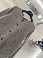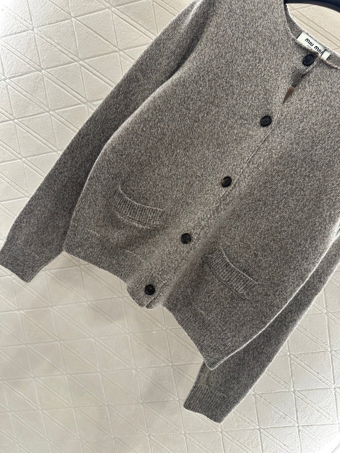 Woolen yarn weaving, delicate texture, comfortable to wear, round neck knitted cardigan cut, large body flat needle plain color simple and more prominent tone, edging with elastic threads to outline and tighten, matched with elastic fabric, fitting the body shape more slimming, showcasing brand tone, versatile style not picking age and skin color, more relaxed, fashionable and stylish upper body.