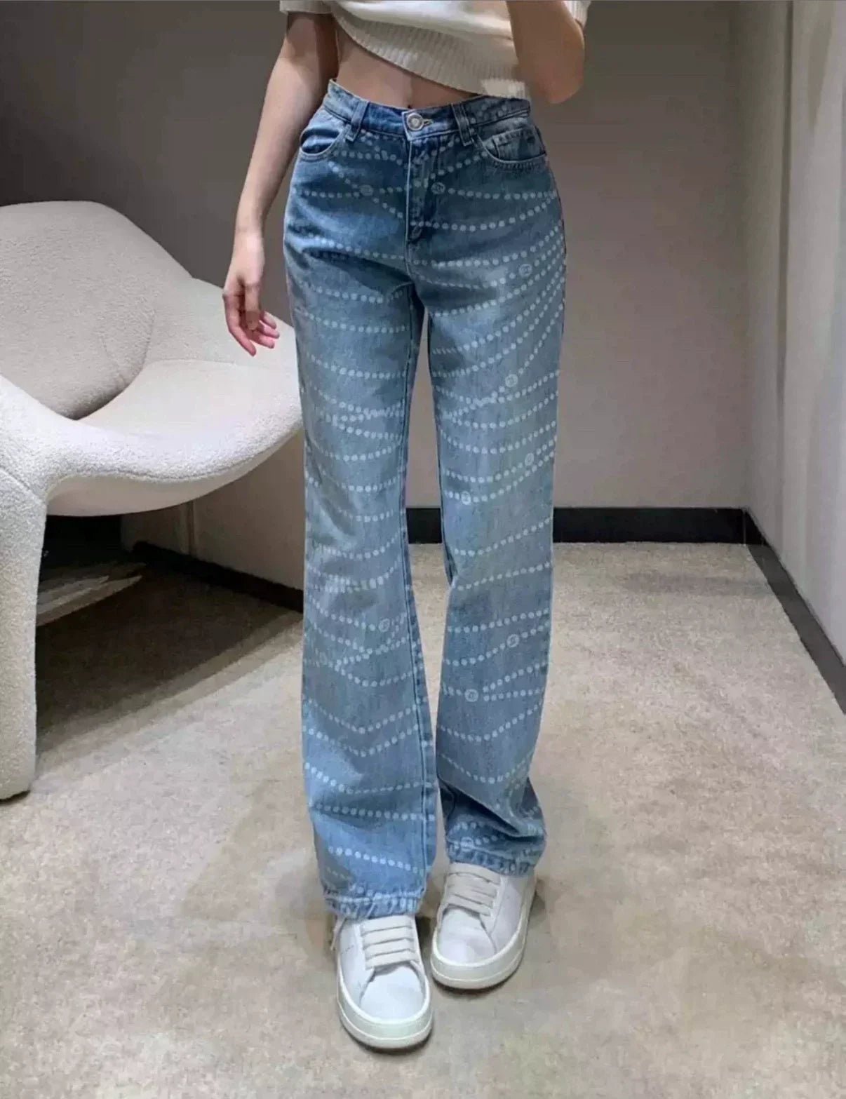 25fw Polka dot printed high waisted jeans