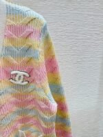 The fabric is made of high-quality wool blend, soft and comfortable, with exquisite knitting craftsmanship. V-neck design, three button style, slim fit and slimming version. Suitable for wearing in spring and autumn seasons, it pairs well with skirts or pants