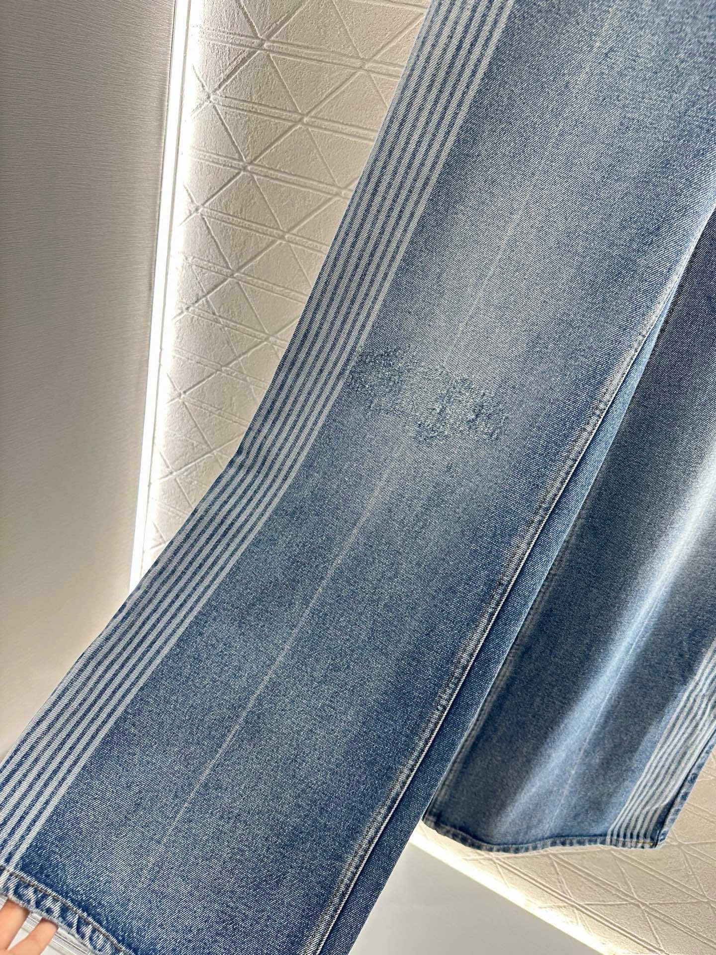 Cotton denim material, washed vintage blue, baseball style denim jacket and pants set, with a deep blue elastic thread design for a snug and comfortable fit, featuring letter printing on the inside and a laser logo on the chest ➕ The letter ribbon print on the outer side of the shoulder sleeves and pants legs highlights the details, low-key highlighting the brand style. It is fashionable and simple, paired with wide leg flared pants of the same series, to modify the leg shape and elongate the proportion. The simple and durable details present a casual and free dressing style. The complete set is fashionable and stylish, and it is also great to pair separately.