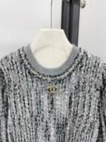 Soft and comfortable. Round neck design with exquisite sequin decoration, gold double-C logo embellished on the chest, fashionable and elegant