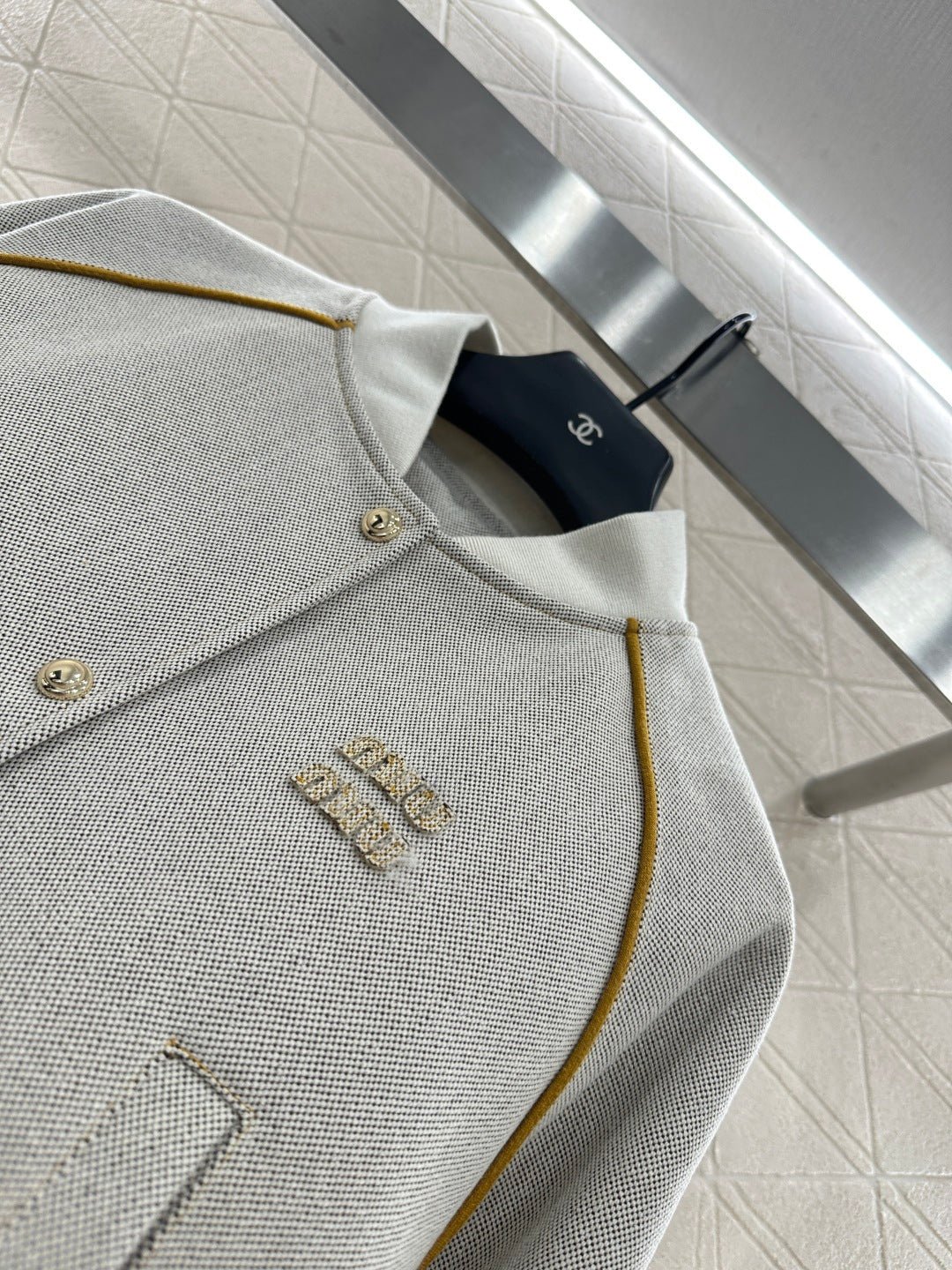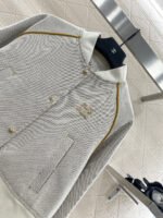 High woven cotton material with high-quality texture, full of appearance, short jacket ➕ A high waisted half skirt set with a fashionable college style short jacket that features a unique style and is shoulder tied and trimmed ➕ The three-dimensional letter pattern on the chest is molded with a gold button design, which is low-key and fashionable. The overall brand tone is very prominent, with a high waist, medium length half skirt and a slightly flared skirt hem ➕ The pleated and pressure processed anti-aging artifact set is effortless to match with high-end and fashionable styles, making it a versatile item when separated
