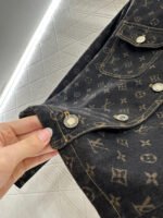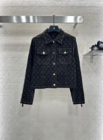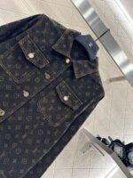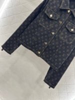 The twill cotton denim fabric has excellent breathability and is soft and skin friendly. The collar jacket and straight leg pants set are fully covered with four leaf clover and letter patterns, giving off a sense of old money. The front shoulder lines of the top are matched with the flip pocket and the style cut, highlighting the upright and neat posture. The waist and crotch ribbons of the same series of straight leg pants are raised, showing playful vitality. The design details echo the whole set of travel, making the outfit more coordinated, high-end, fashionable and stylish