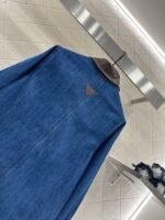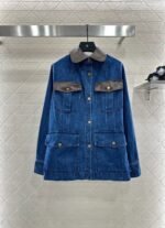 The twill cotton denim material is washed multiple times, presenting a crisp texture. The flip collar and shoulder denim jacket are cut, the flap pocket and collar edge are decorated with contrasting leather, forming a double collision with the body. The basic contour line is durable, the high-end retro natural jacket is loose and slightly medium long, creating a neutral, cool and fashionable style